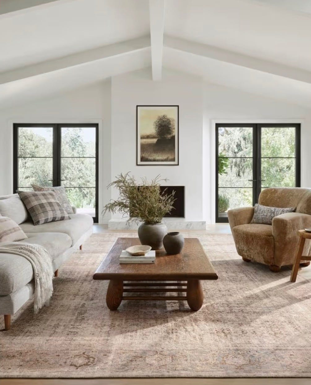 Bold patterns and confident color mixing make a comeback, but they are grounded by restraint. Large scale prints, layered textures, and rich tones feel collected over time rather than styled all at once. The focus is on creating homes that feel expressive, layered, and deeply personal without feeling chaotic