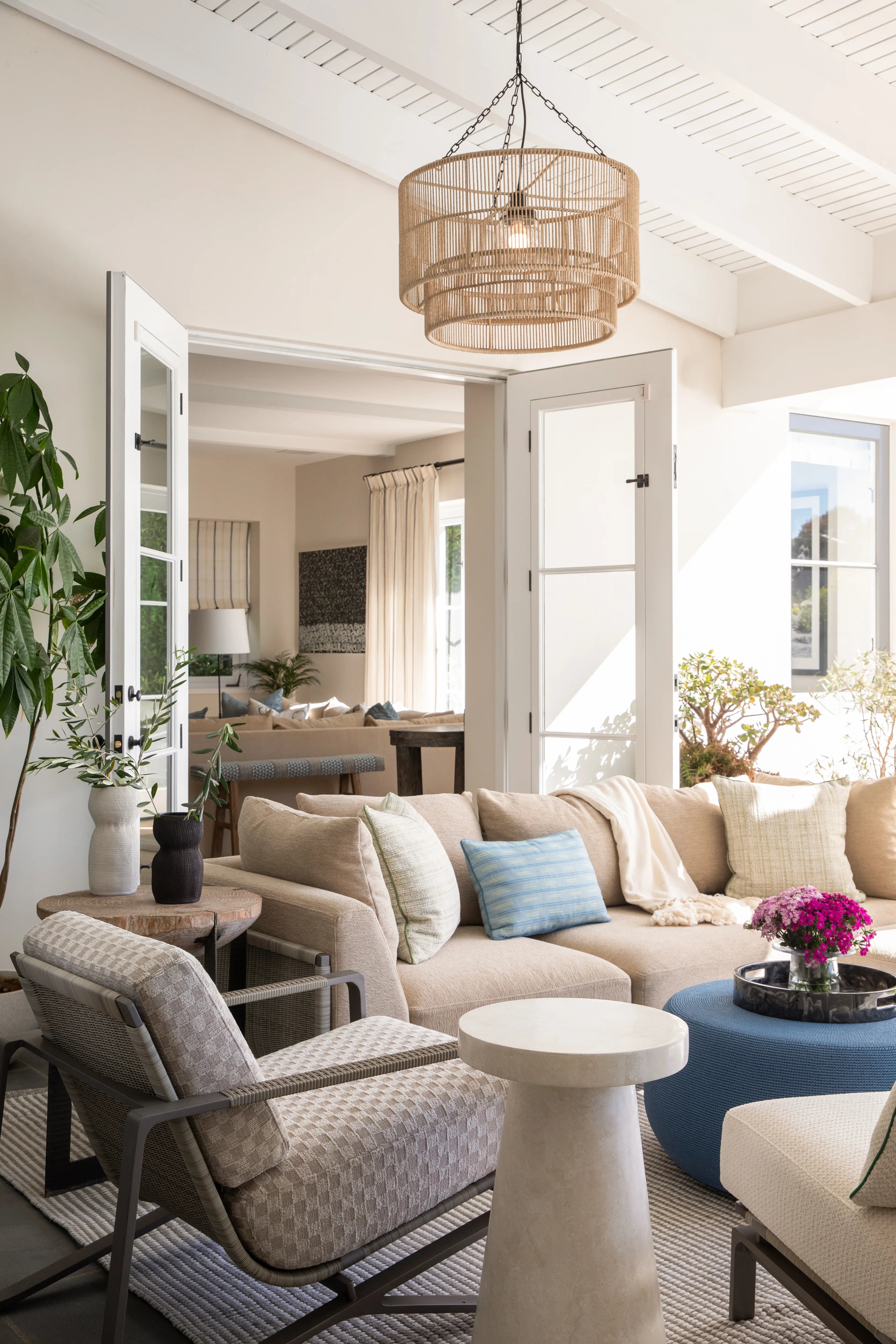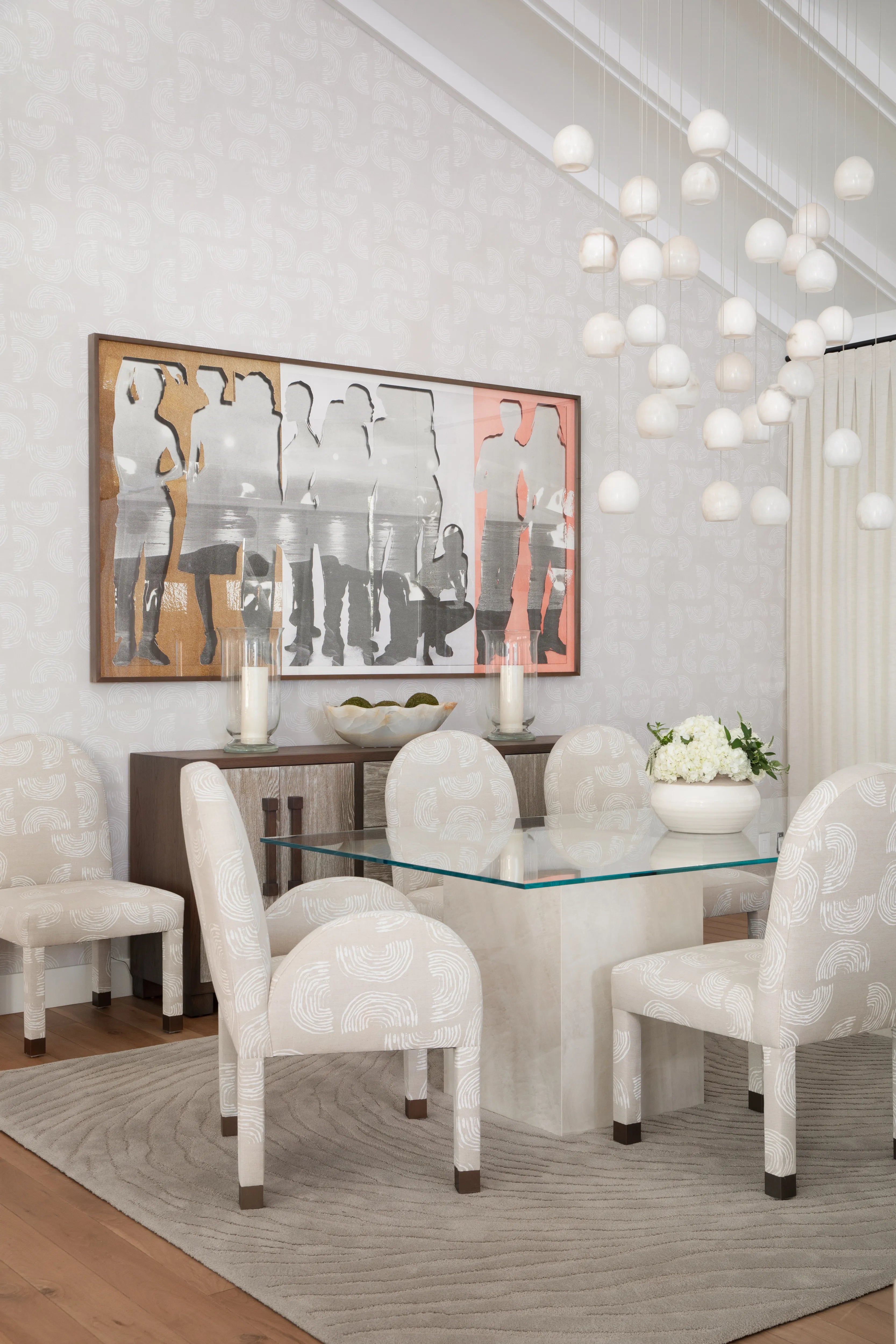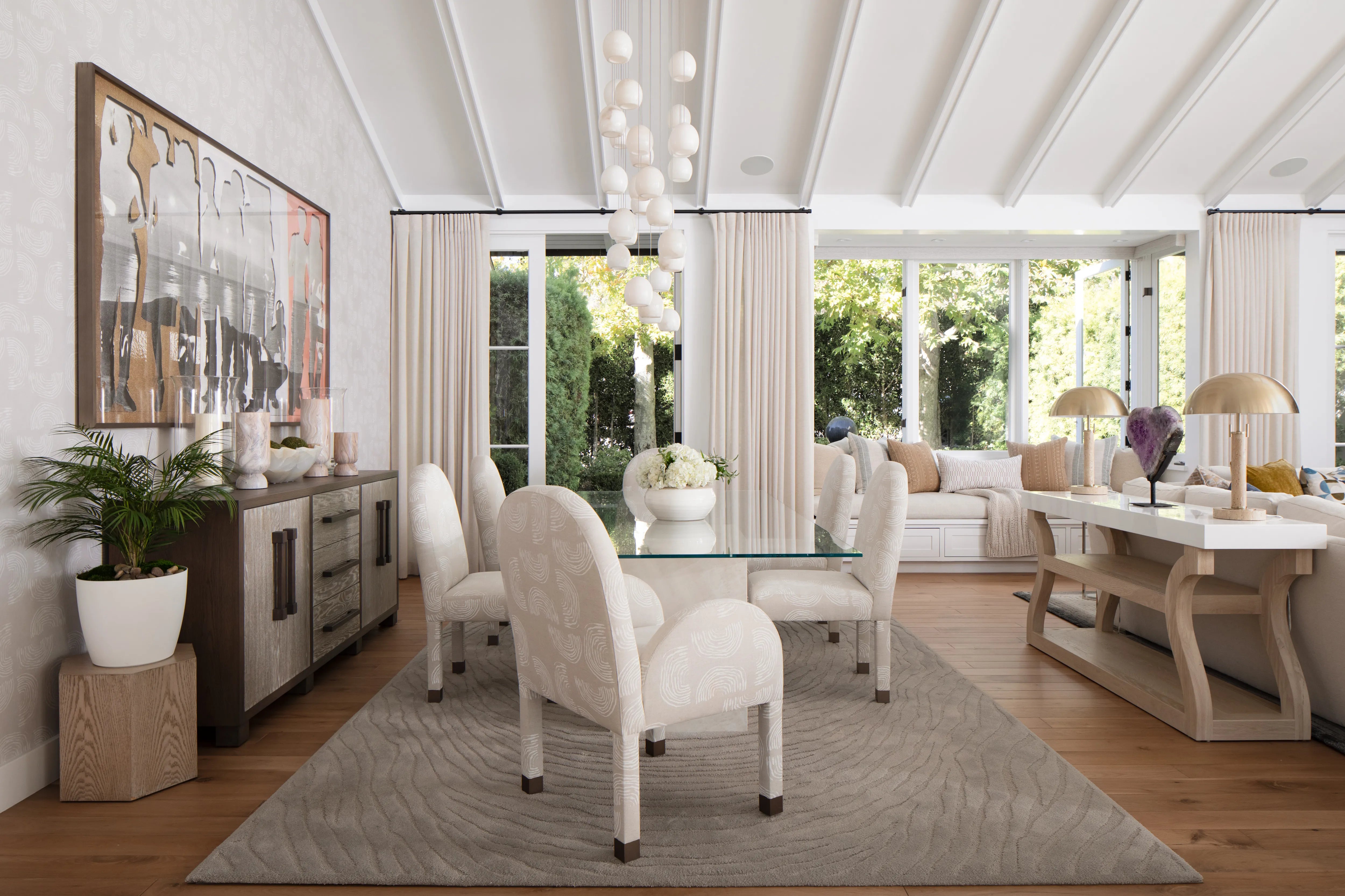This Palisades home features the ideal juxtaposition of calm neutrals and pops of color, texture, and glamour. Designed for a family with a love of traveling and art collecting, this house displays striking wallcoverings and accents that set the tone for conversations and gatherings. Rich details bring each space to life, while unique curated pieces reflect our clients’ journeys and passions, creating an eclectic yet harmonious atmosphere.