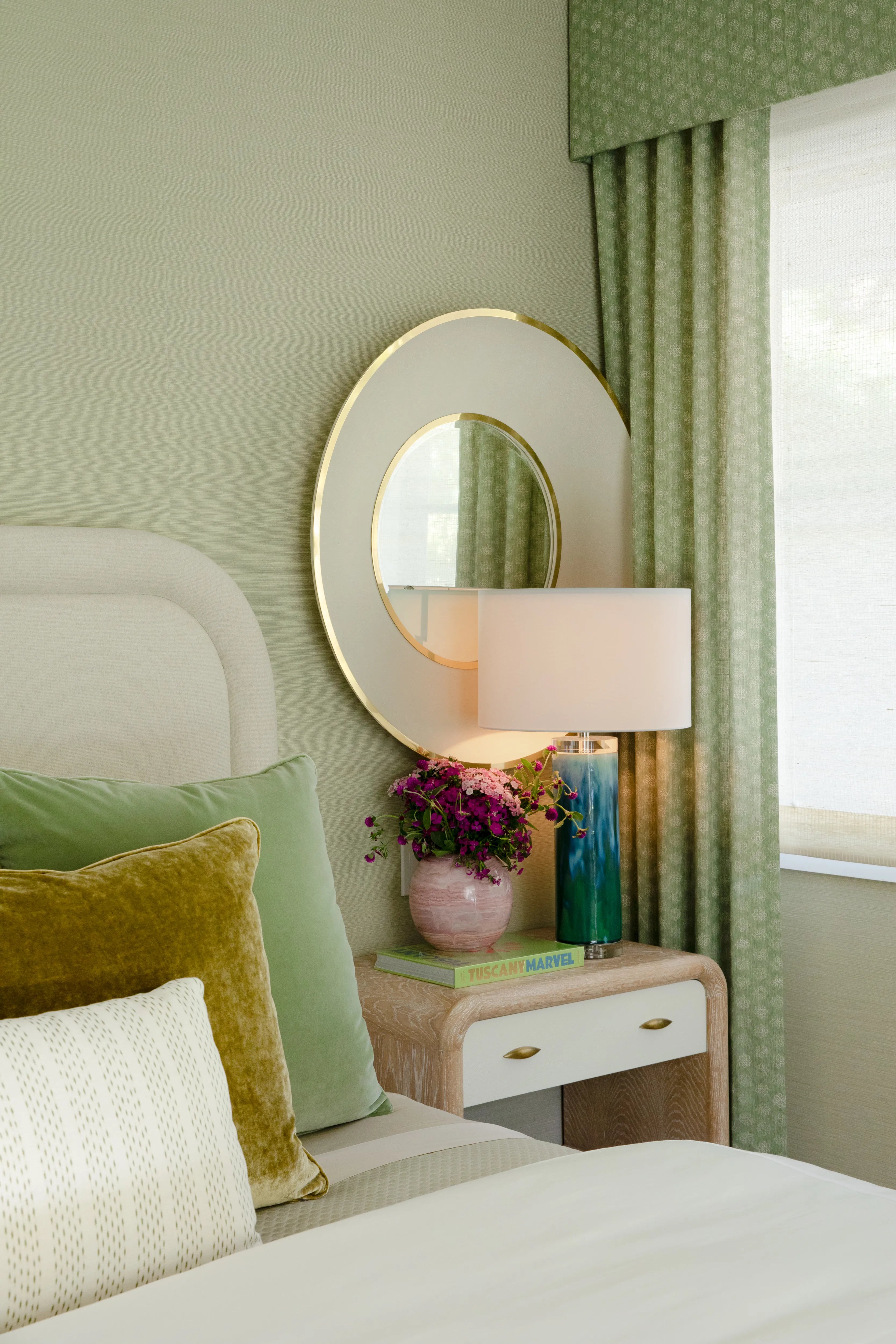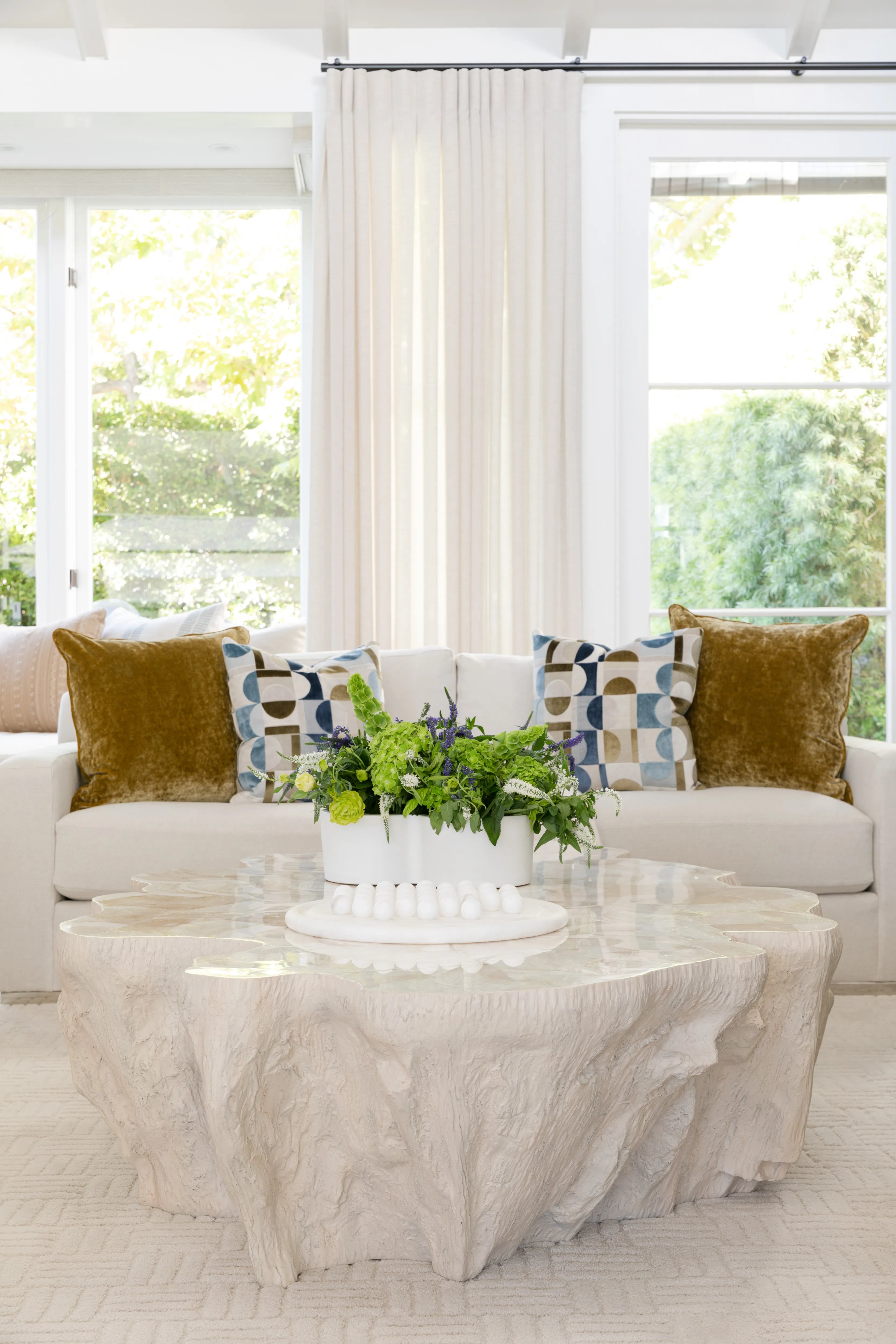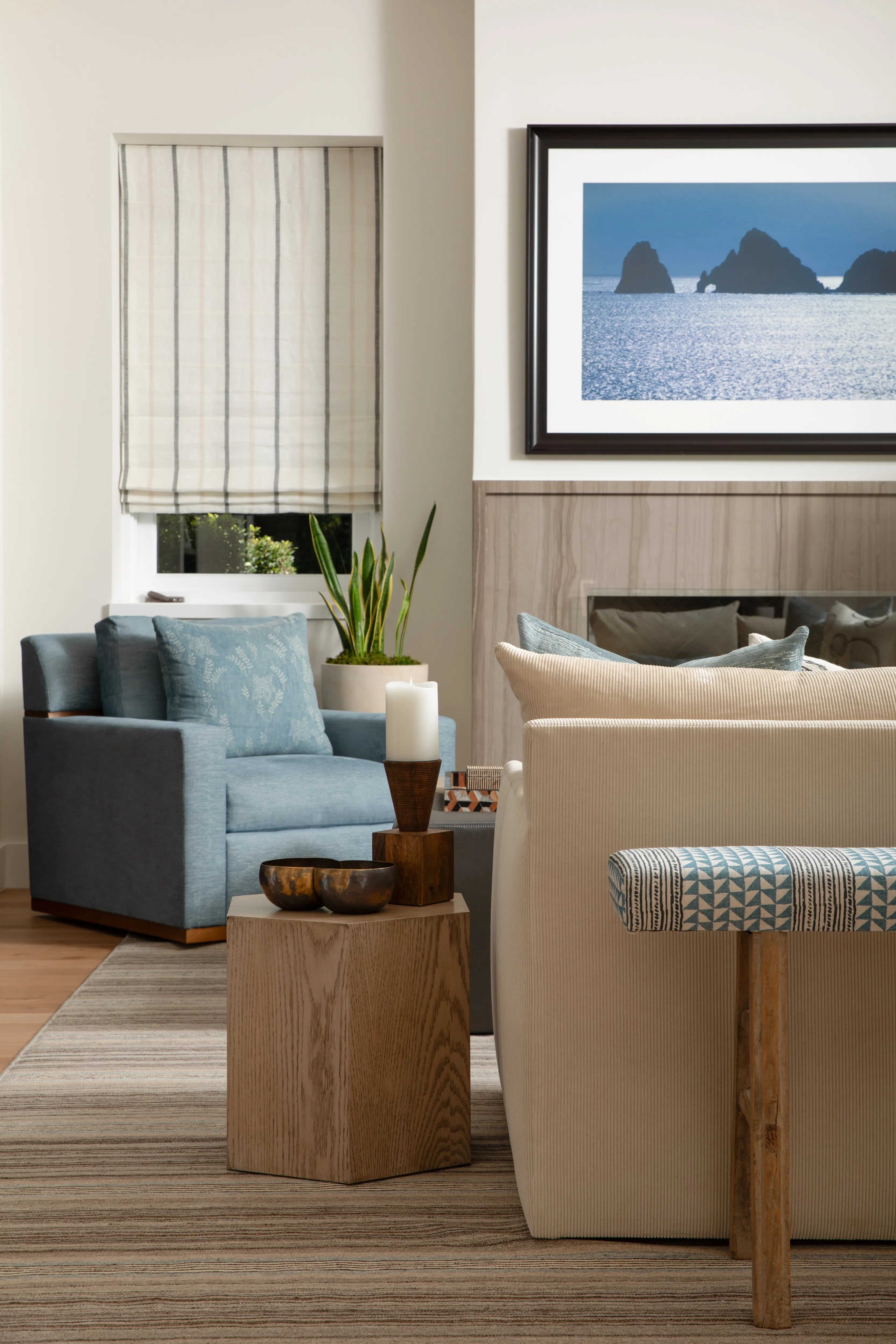 This Palisades home features the ideal juxtaposition of calm neutrals and pops of color, texture, and glamour. Designed for a family with a love of traveling and art collecting, this house displays striking wallcoverings and accents that set the tone for conversations and gatherings. Rich details bring each space to life, while unique curated pieces reflect our clients’ journeys and passions, creating an eclectic yet harmonious atmosphere.