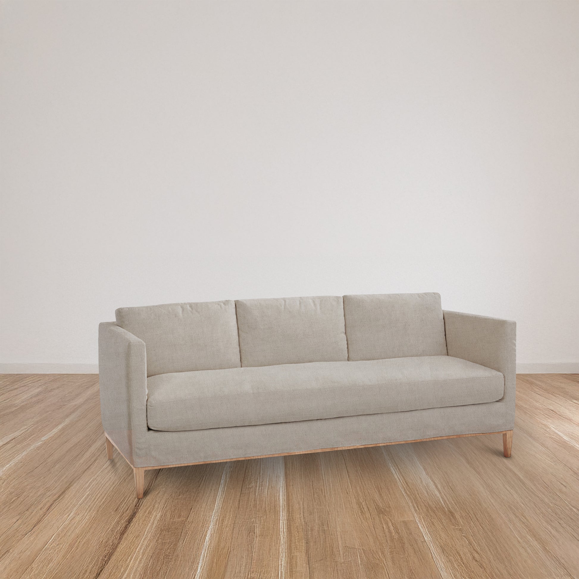 Relaxed yet refined, the Alva Slipcovered Sofa blends timeless design with everyday comfort. Its clean silhouette is enhanced by topstitching, a long bench cushion, and NaturalLEE cushions that create a plush, inviting seat. The natural on oak base adds warmth, while the removable slipcover makes this piece as practical as it is stylish.