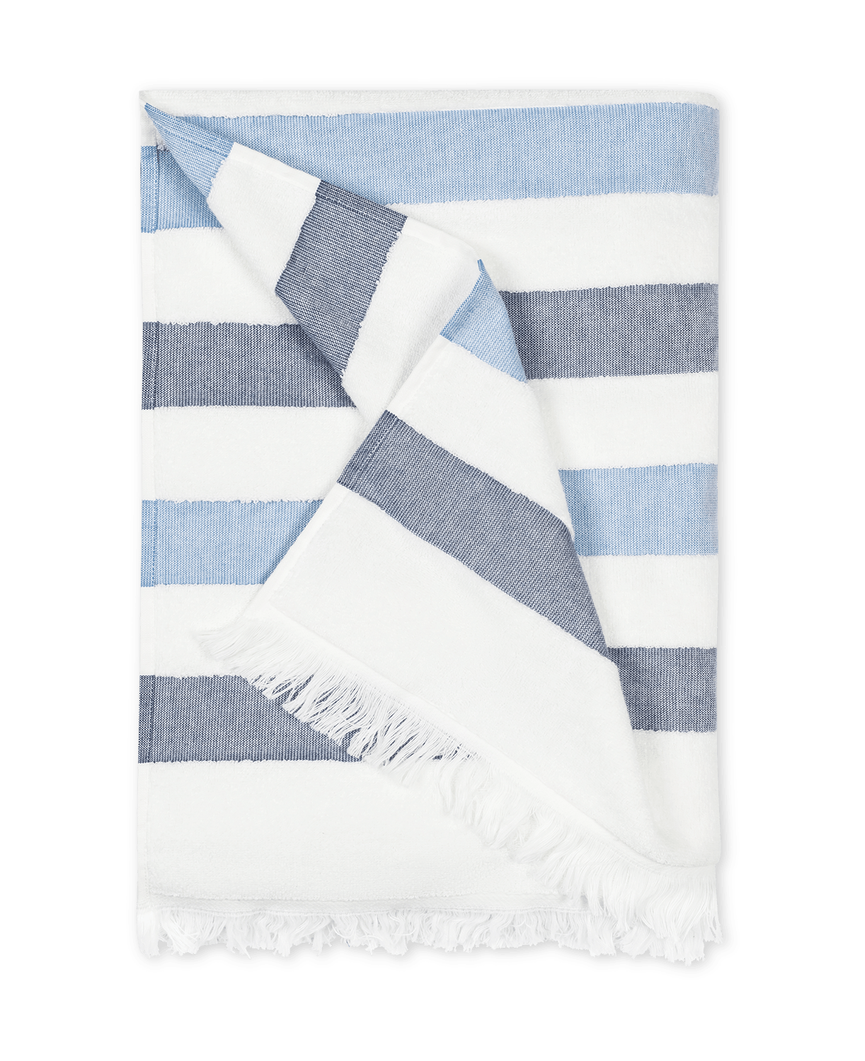 - Textural stripe design with terry and flat-woven weave
