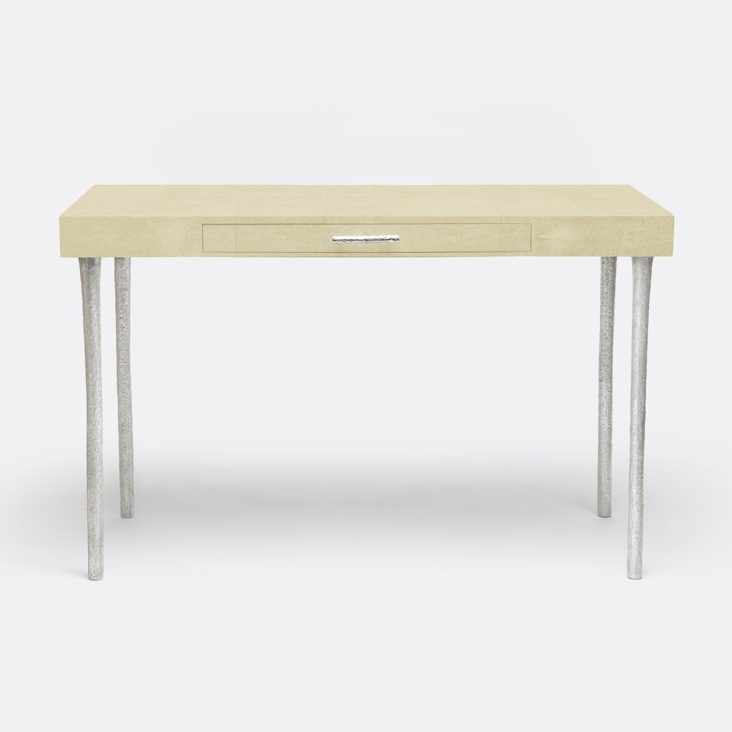 The Audrey Desk blends clean, modern lines with a refined textural finish. Designed as a versatile piece that can function as a desk or console, its slim profile top includes a practical drawer for storage. Available in either a waxed-linen or faux shagreen finish, Audrey is elevated by organically textured metal legs and a coordinating drawer pull, bringing understated sophistication to any space.