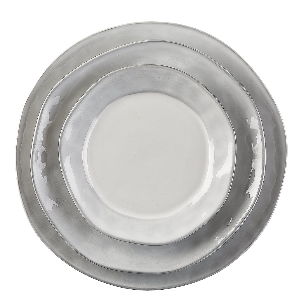 Inspired by the breathtaking lagoons and cascading waterfalls of Portugal’s Azores islands, the Azores Charger brings natural beauty to your table. Each plate is hand-painted with a matte or glossy border—Blue Lagoon features a vibrant blue hue, Greige Shimmer offers a soft, elegant grey, and Oceana showcases a glossy white with soft blue detailing for a coastal touch.