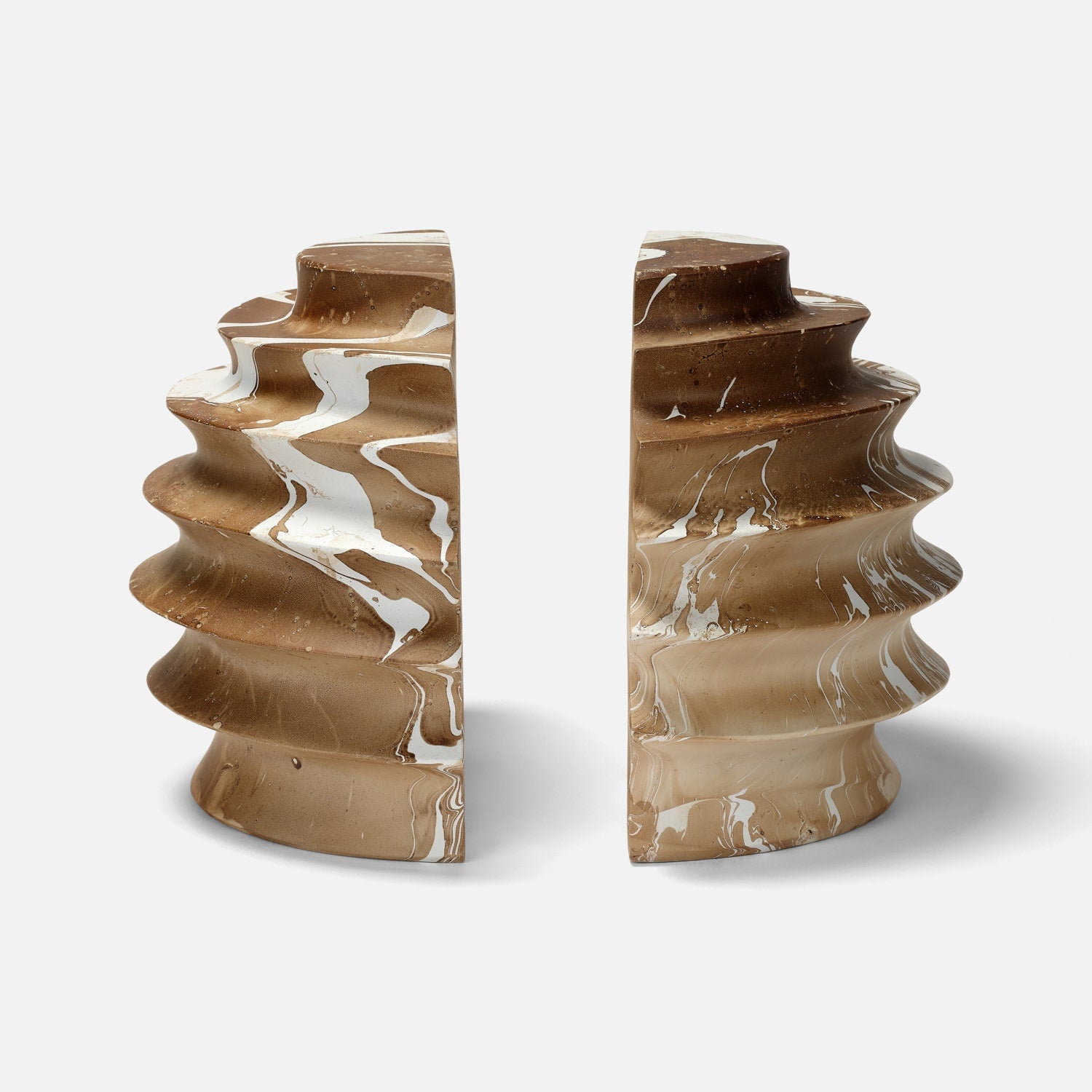 Distinctive and timeless, the Baylor Ridged Sphere Bookend Set adds both artistry and utility to shelves, mantels, or desktops.
