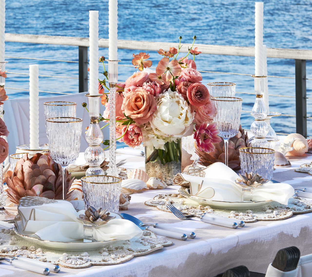 The Beachcomber Napkin captures the joy of discovering seaside treasures with hand-embroidered shell motifs in each corner. The soft, natural-toned linen napkin effortlessly sets the mood for exquisite entertaining from coast to coast.