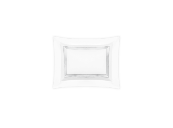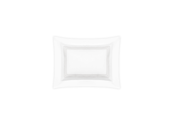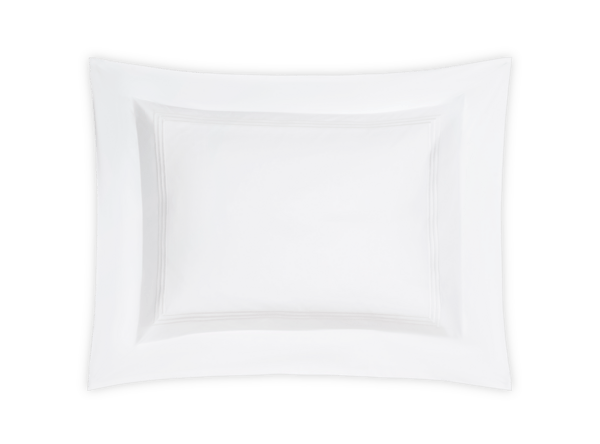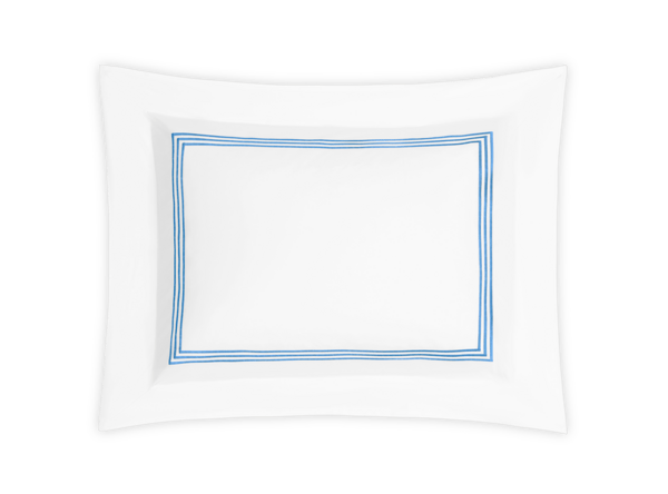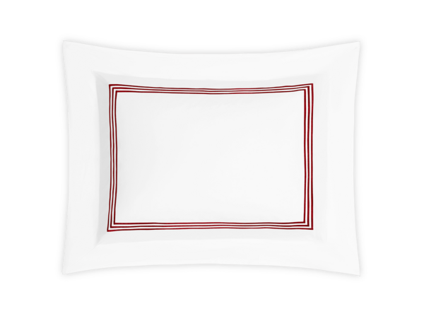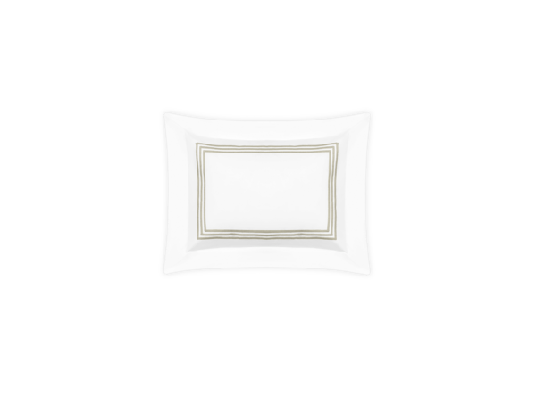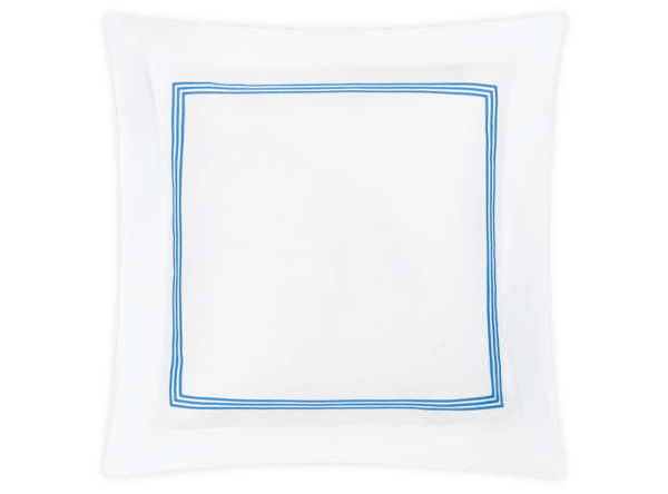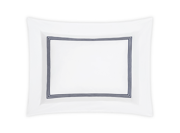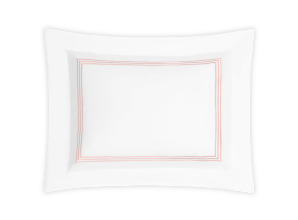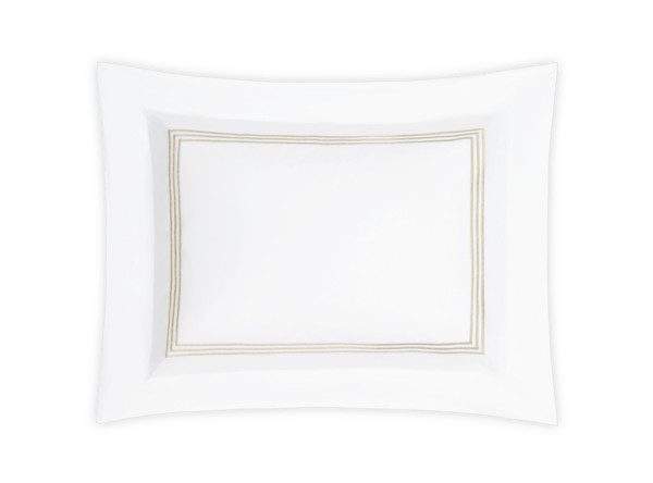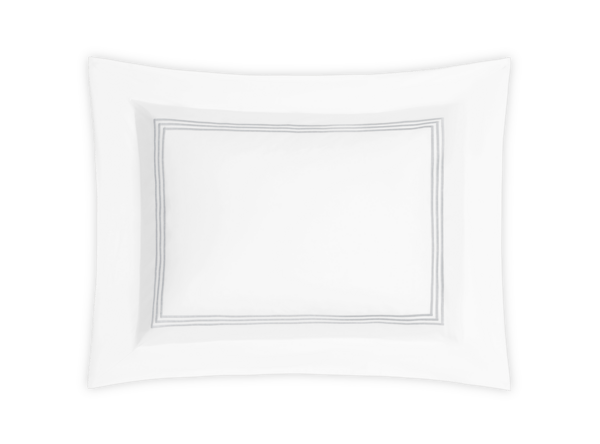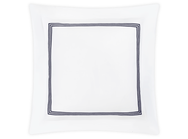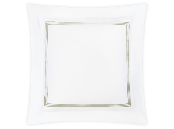 Inspired by classic hotel bedding, the Bel Tempo Sham features three embroidered stripes on crisp, 520 thread count Ceylon percale. Its refined design blends timeless heritage with a contemporary sensibility, creating a look that feels serene, tailored, and effortlessly elegant.