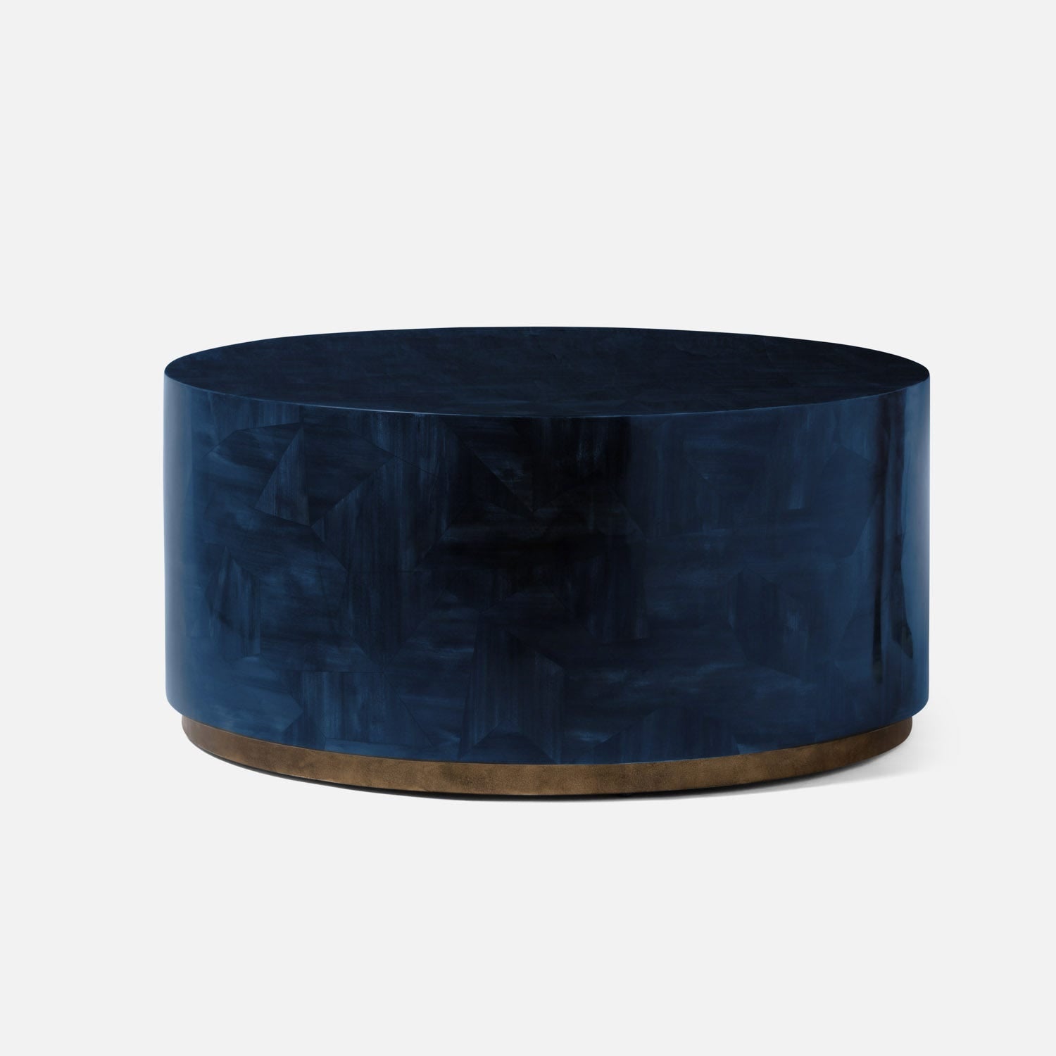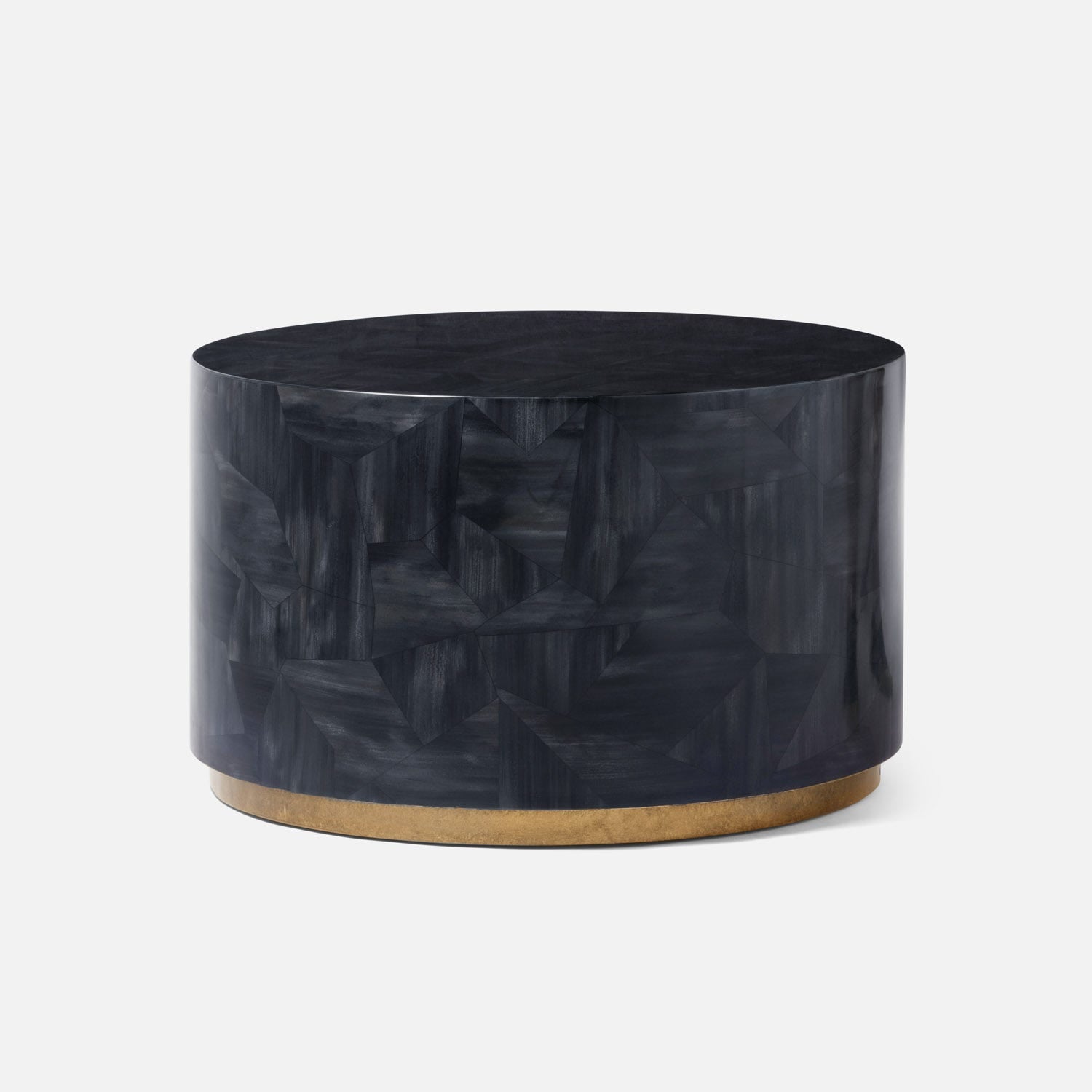 The Boyd Coffee Table brings refined sophistication to the living room with its sleek, cylindrical silhouette and timeless appeal. Featuring a nuanced faux horn finish, the piece is defined by rich striations and a geometric pattern that lend depth, texture, and visual intrigue. Inspired by the elegance of the Boyd Side Table, this larger version makes a striking centerpiece with a bold yet versatile presence.