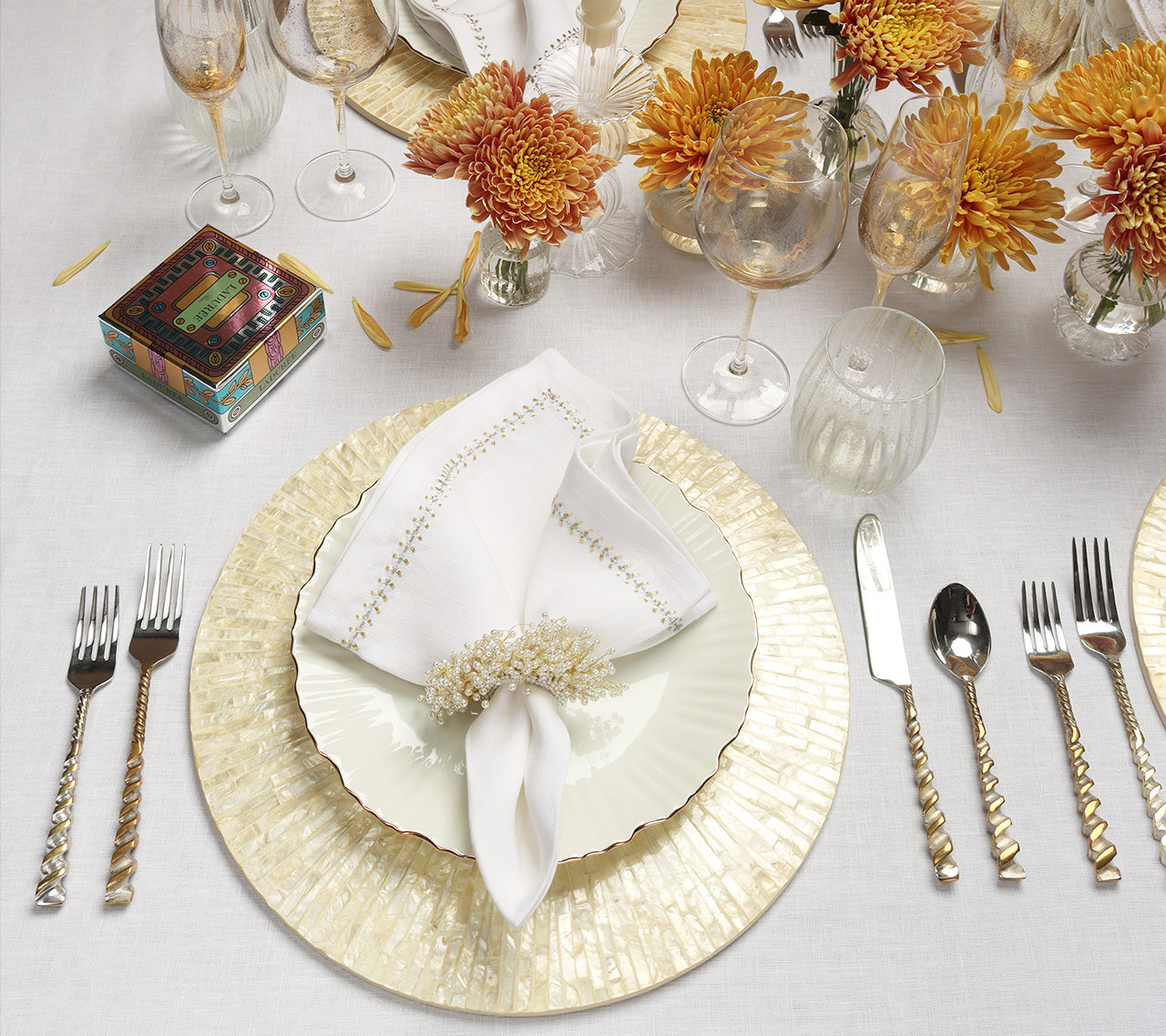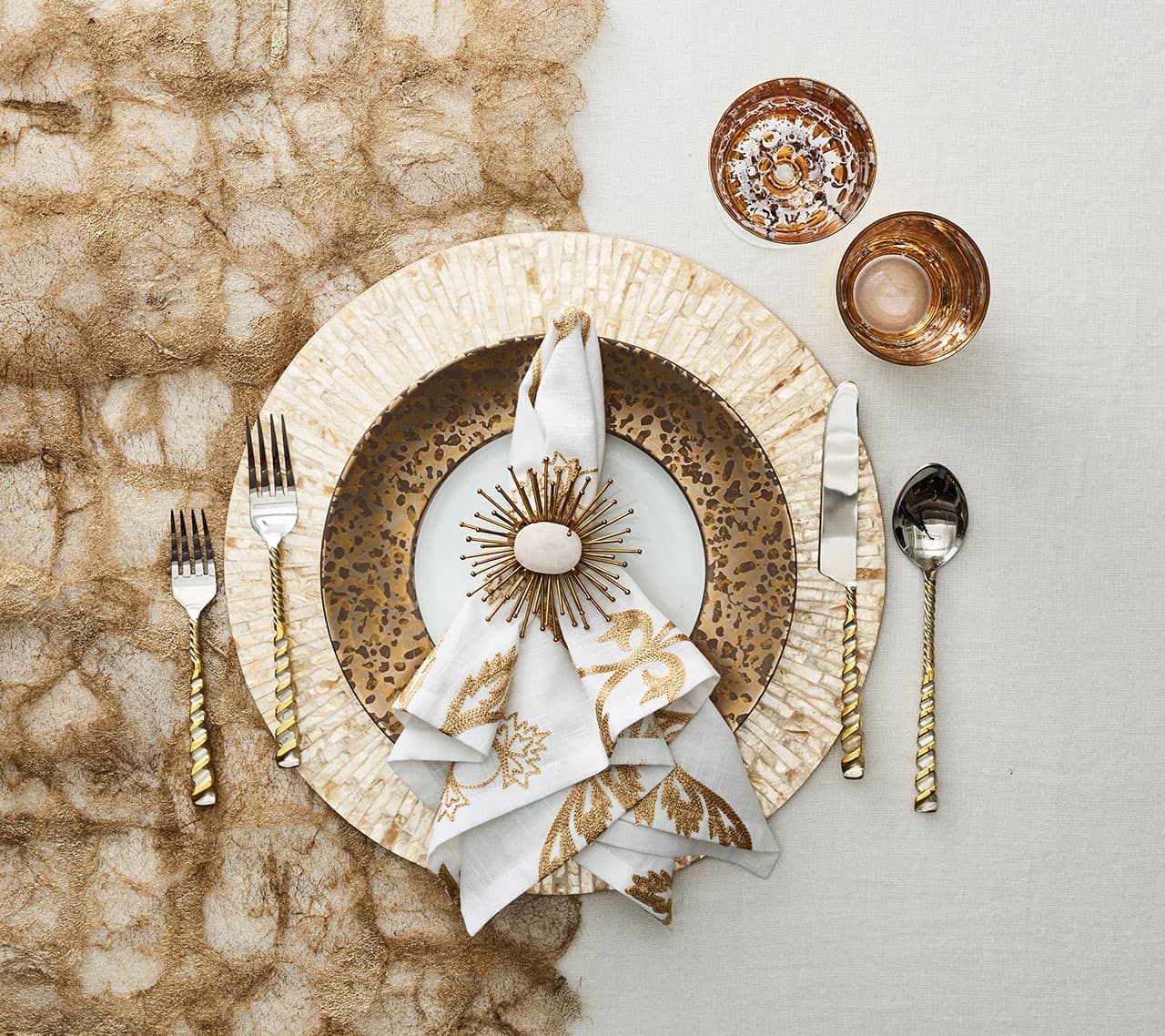 With its shimmer and structure, the Byzantine Placemat is a timeless piece that brings texture, refinement, and warmth to every place setting.