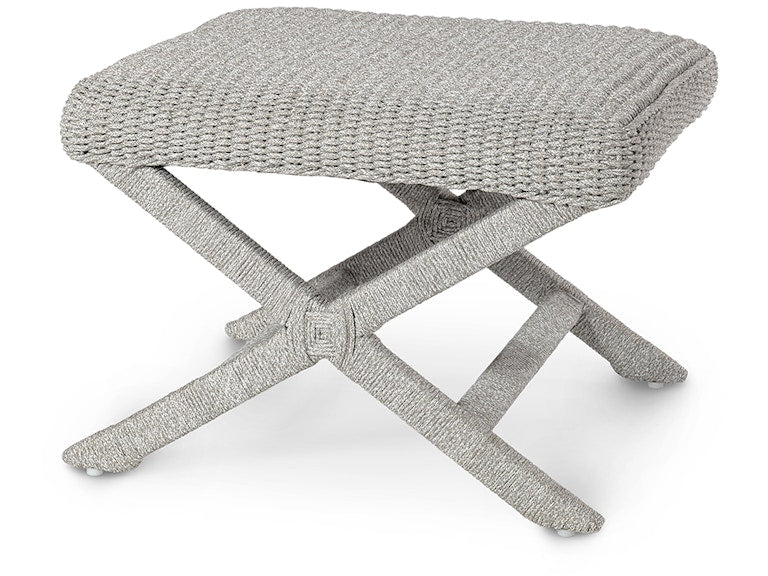 Designed for stylish durability, the Capri Outdoor Stool features a powder-coated aluminum frame intricately hand-woven with synthetic rope in a refined silver grey finish. Crafted for outdoor living, the UV-protected, all-weather weave is resistant to cracking, peeling, fading, breaking, and stretching—ensuring performance season after season. Available only as shown.