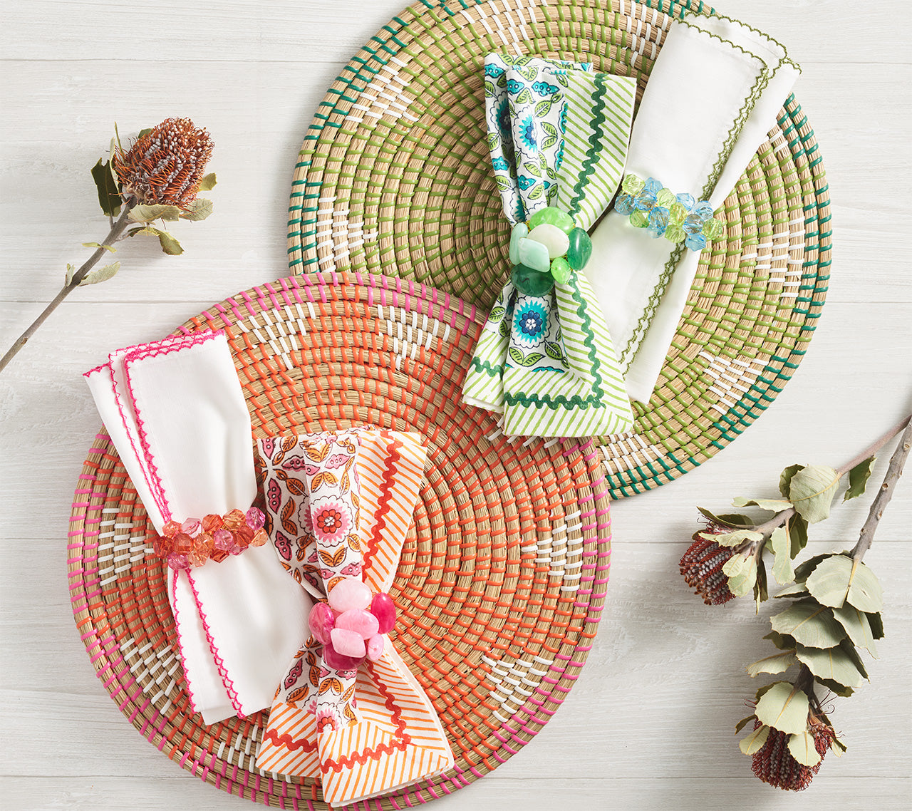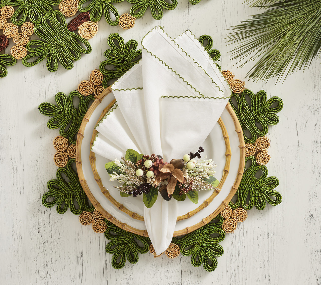 The Casbah Napkin brings serene elegance to any table, especially in outdoor garden settings. Crafted from a luxurious cotton-linen blend, it’s a must-have for every entertaining lifestyle. The intricate hand-embroidered details add brilliant green accents of refinement, perfect for elevating casual gatherings and sophisticated soirées.