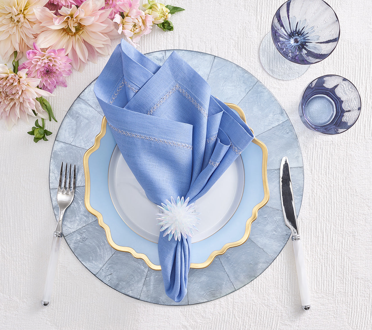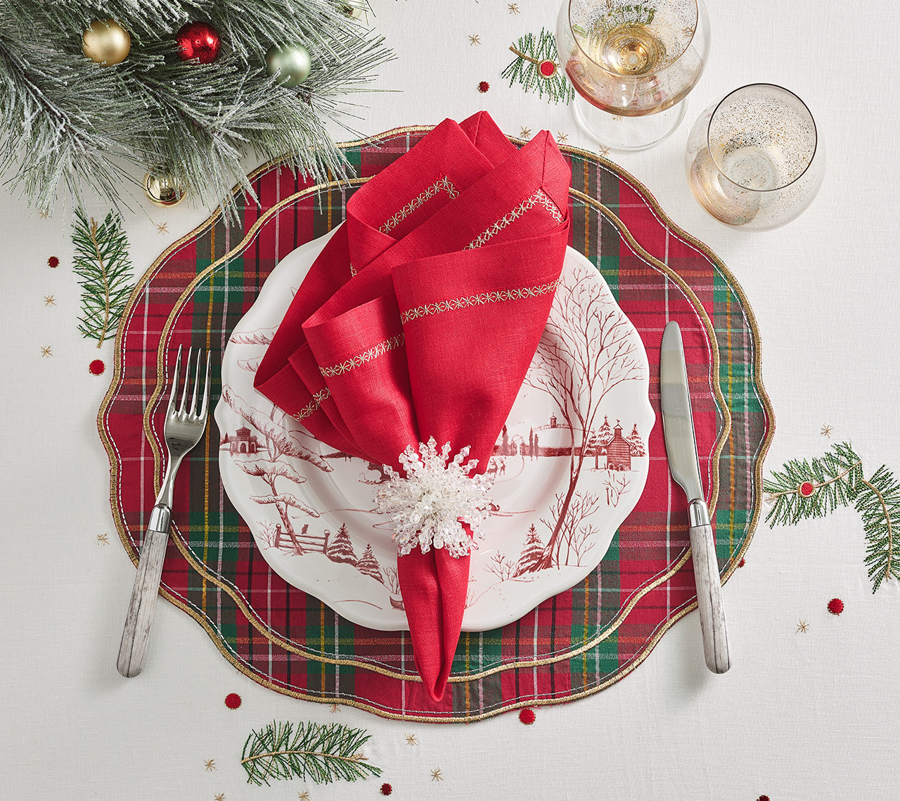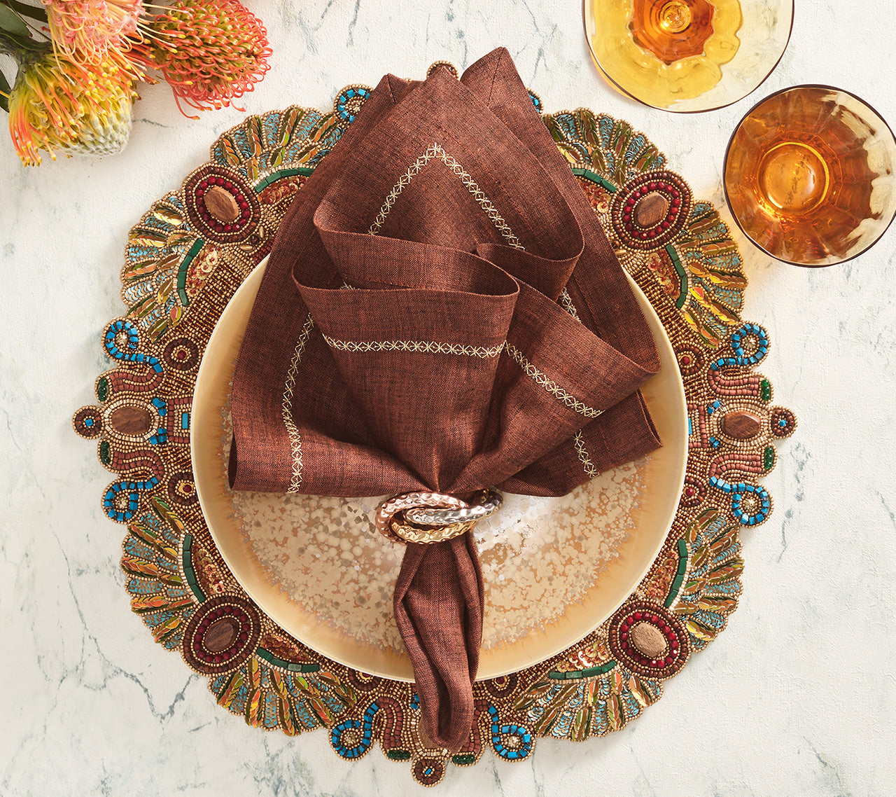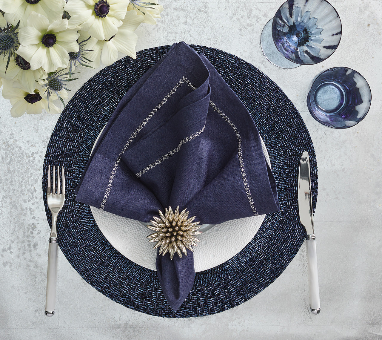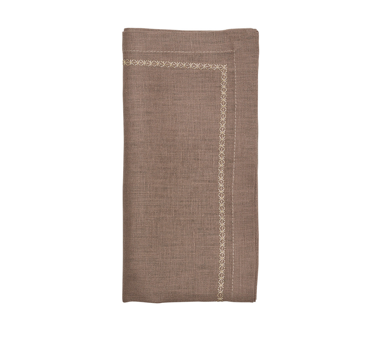 Elevate the table with our Classic Napkin. Available in a variety of rich colors, these 100% linen napkins are great for adding a pop of color and a touch of elegance. The Classic Napkin has a delicate border of intricately embroidered silver stars. The versatile taupe variation lends itself to many different entertaining themes throughout the year, from New Year’s celebrations to a summertime garden party to seasonal fall gatherings.