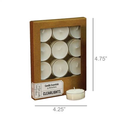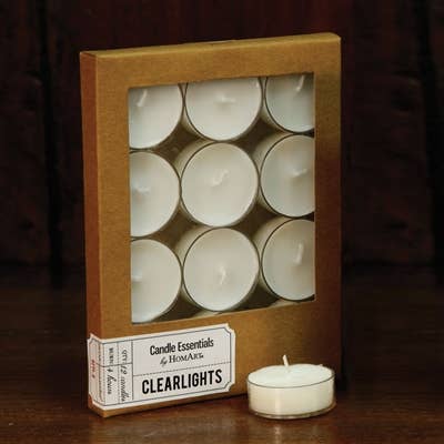 HomArt's Clearlites are clean-burning candles sure to find a comfortable home in many styles of votive cups and containers. These delightful little candles provide 4 hours of lovely soft candlelight. HomArt’s Clearlites are poured using a high-quality blend of unscented paraffin and palm wax in a creamy shell white color and have 100% cotton wicks. 4 hour burn time
