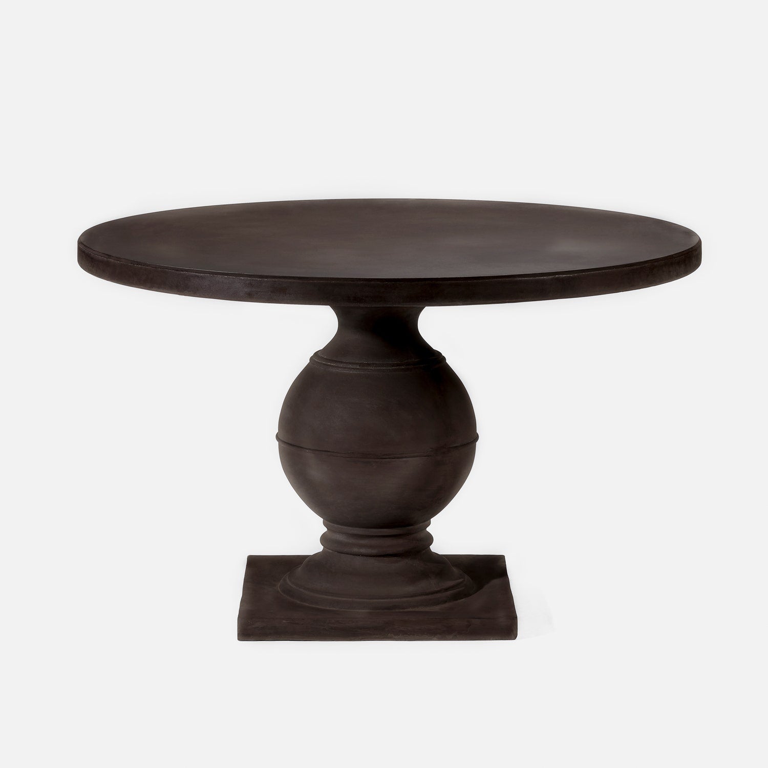 The traditional base and simple shape of our Cyril table make it the ideal centerpiece for outdoor gatherings. Its pedestal stand gives it such an airy feel, you might want another one for inside as well! Concrete material naturally distresses. Minor cracks and imperfections are to be expected.