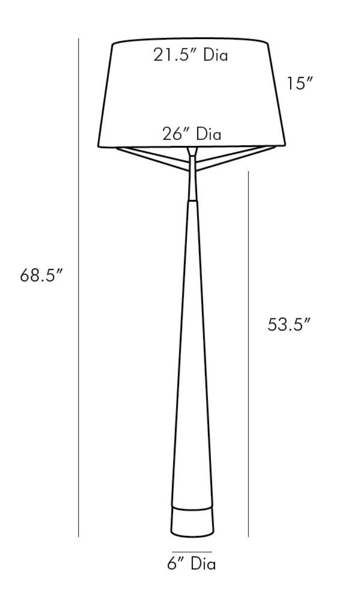SIMPLE AND MODERN, THIS CONE-SHAPED FLOOR LAMP IS FINISHED IN IVORY AND HERITAGE BRASS. TOPPED WITH A UNIQUE SPIDER-LIKE FRAME THAT SUPPORTS THE WHITE LINEN SHADE. NO HARP IS NEEDED FOR THIS LAMP.