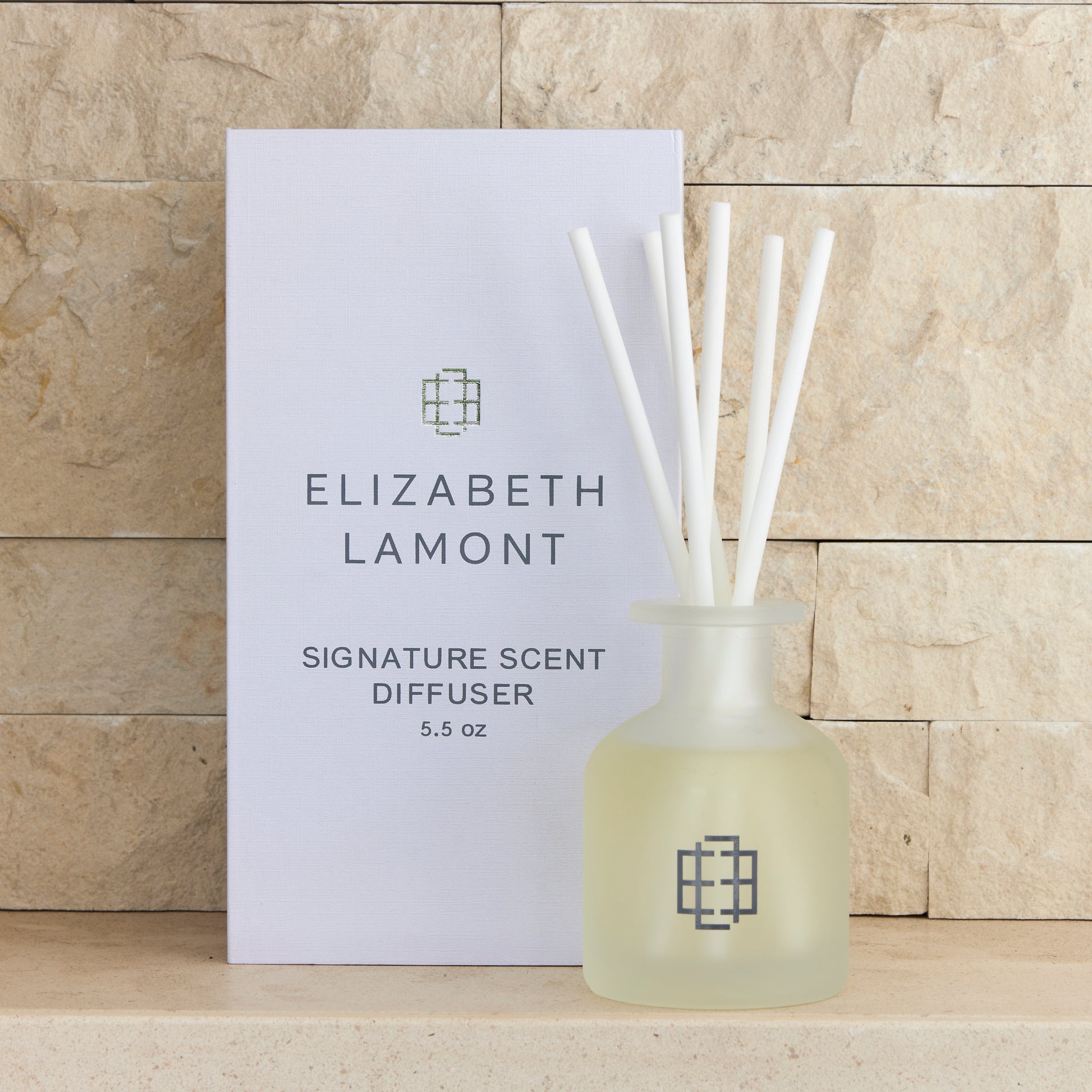 Immerse your home in serene sophistication with the Elizabeth Lamont Signature Scent Diffuser. Designed to deliver a continuous, subtle fragrance experience, this elegant diffuser infuses your space with our exclusive floral scent—delicately layered with notes of citrus, vanilla, and tonka—creating a warm and inviting atmosphere.