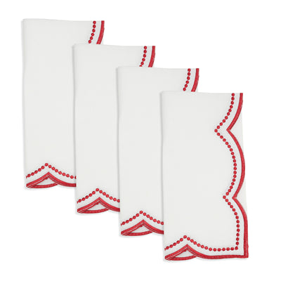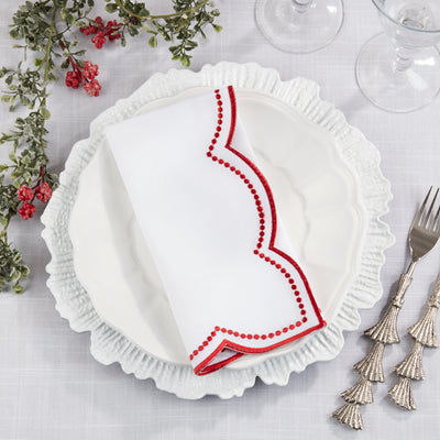 Elegant yet playful, the Embroidered Polka Dot Napkin brings cheerful sophistication to your table. Crafted from 100% polyester, it features a crisp square silhouette finished with a delicately scalloped edge embroidered in whimsical polka dots. Both durable and easy to care for, it’s the perfect accent for everyday meals or festive gatherings.