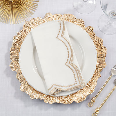 With its timeless embroidery and graceful scalloped edge, the Polka Dot Napkin pairs beautifully with coordinating runners and placemats to create a polished, inviting tablescape.