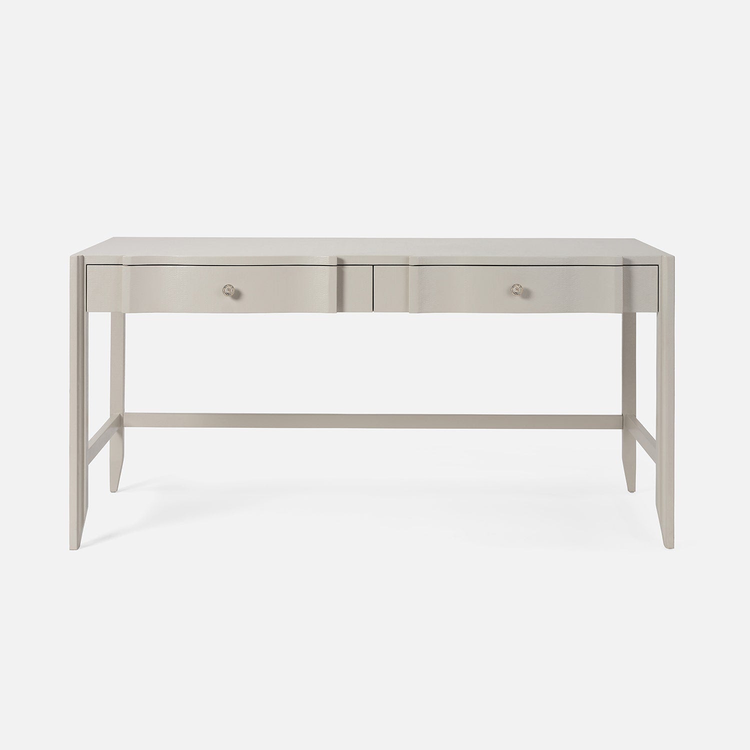 Delicate and dimensional, the Essery Desk showcases a mastery of craftsmanship and texture. Its fabric-like profile is created from hand-applied faux raffia, flowing across the front with refined artistry. Custom-designed hardware completes the look, while the thoughtful details and quality construction embody the elevated standard of Made Goods furniture.