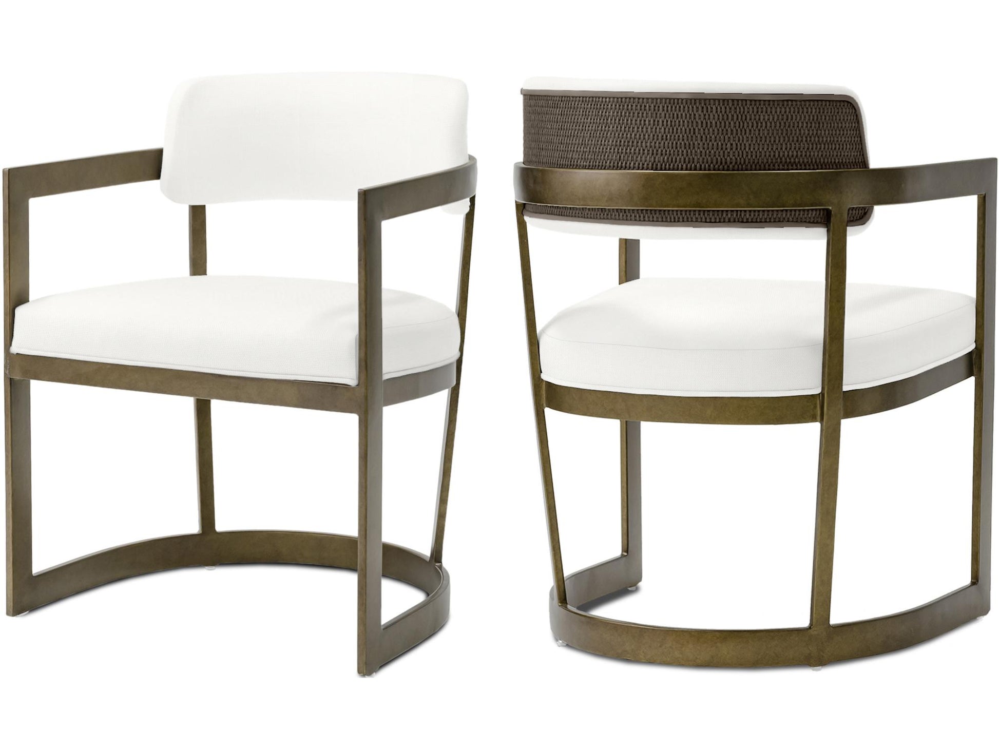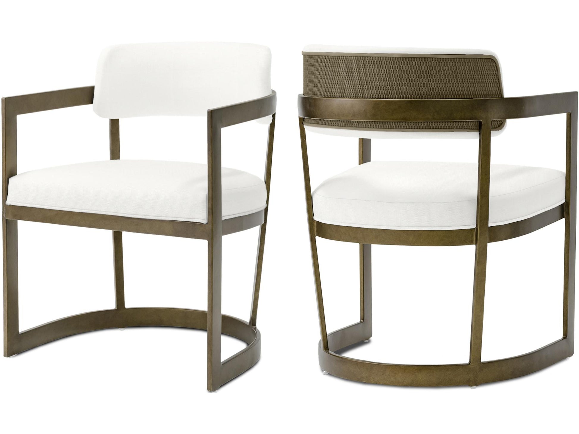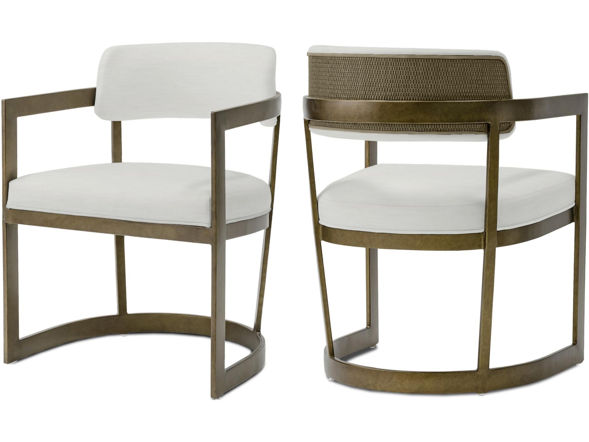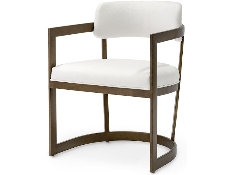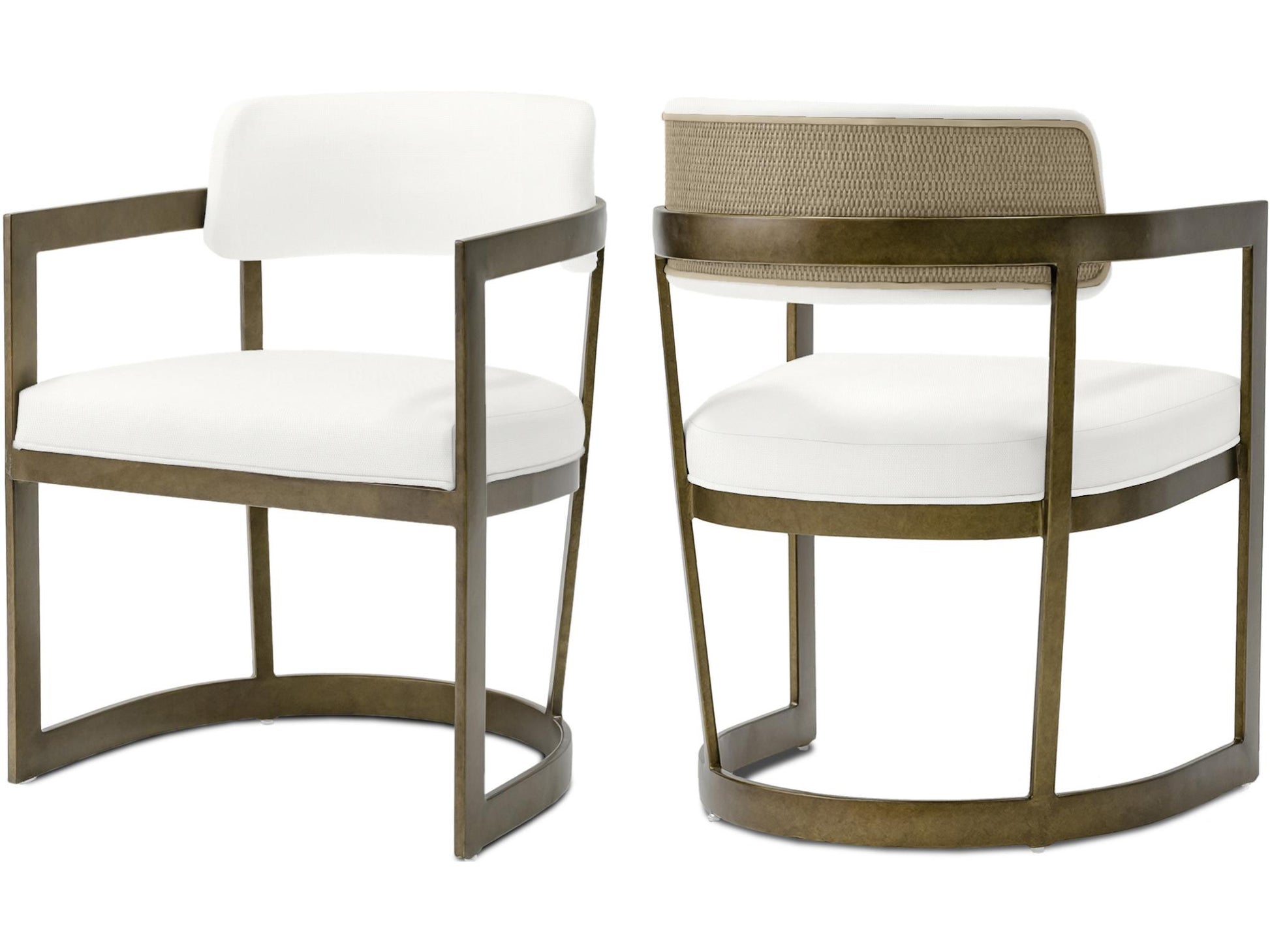 A sculptural silhouette that blends comfort with refined texture, the Ethos Arm Chair features a metal frame and legs in an antique gold finish, paired with a fixed upholstered seat and inside backrest for tailored comfort. The outside backrest is accented with handwoven cane matting, offered in a range of signature = wood finishes, allowing for a fully customized look.