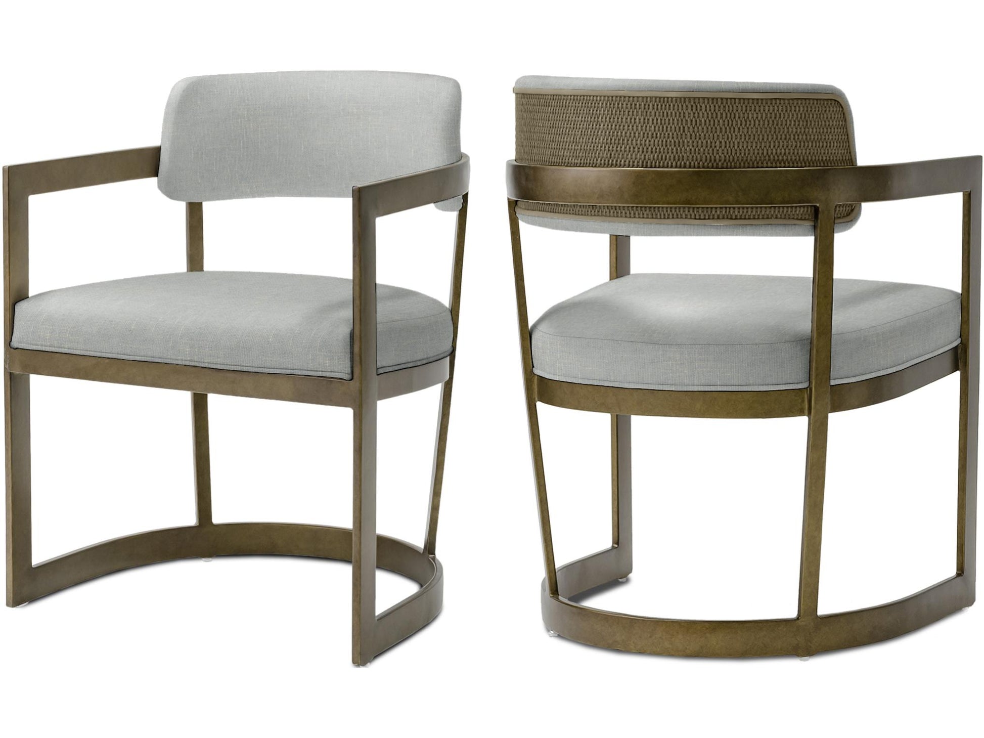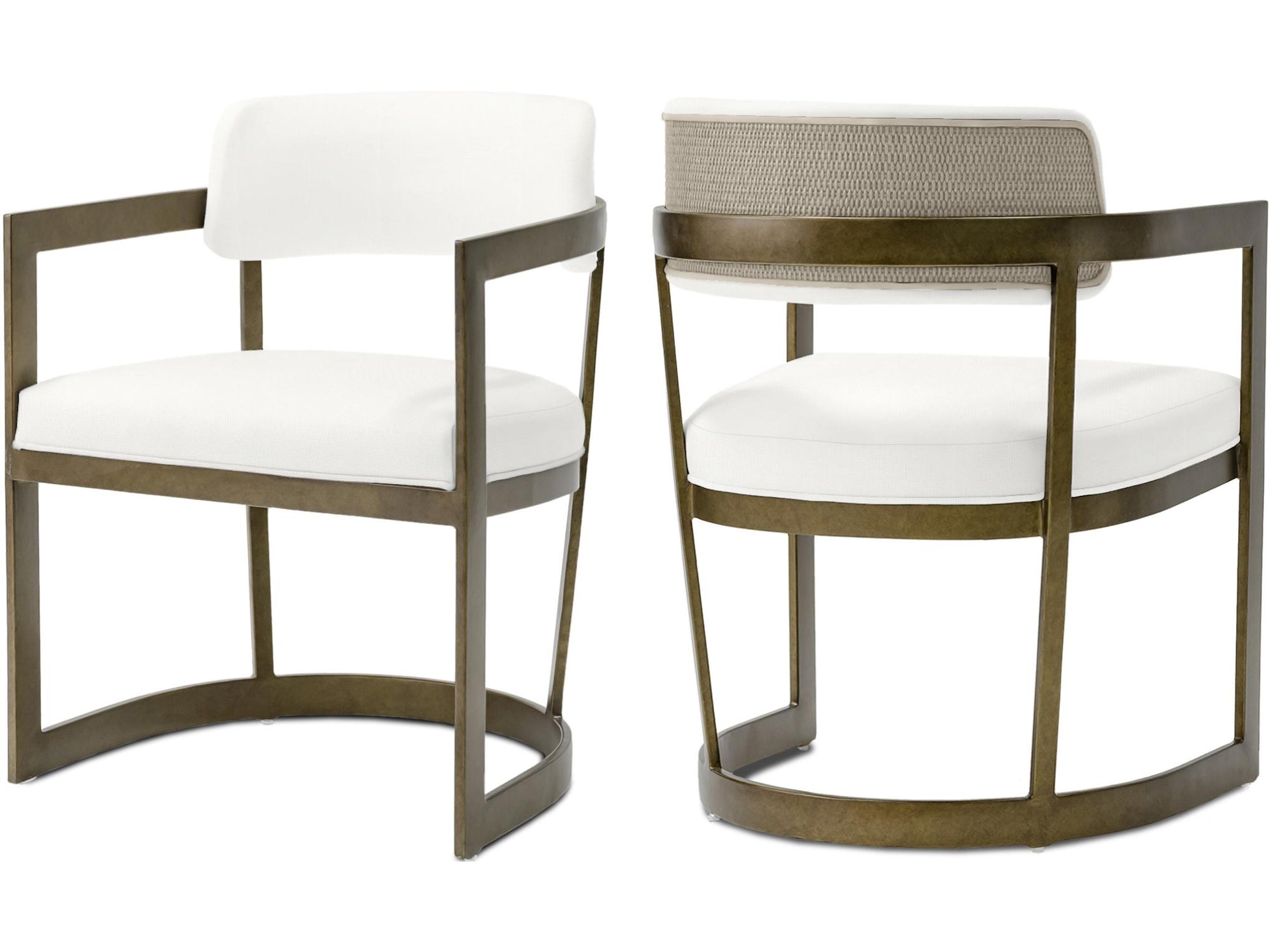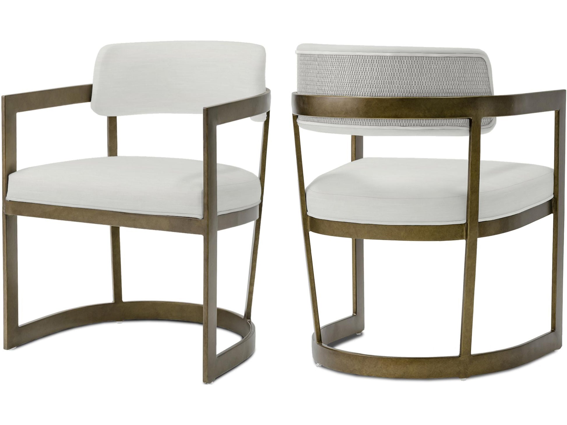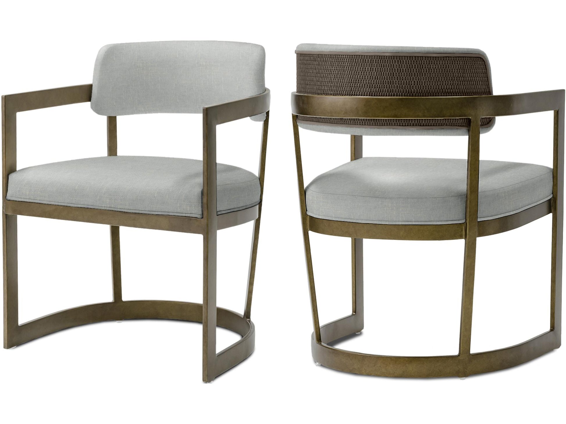 A sculptural silhouette that blends comfort with refined texture, the Ethos Arm Chair features a metal frame and legs in an antique gold finish, paired with a fixed upholstered seat and inside backrest for tailored comfort. The outside backrest is accented with handwoven cane matting, offered in a range of signature = wood finishes, allowing for a fully customized look.