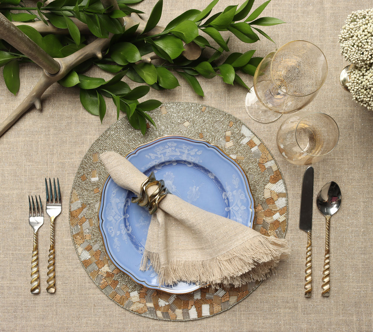 Add a luminous layer to your dining table with this sparkling essential, where rustic elegance meets holiday glow.