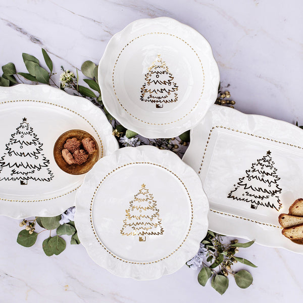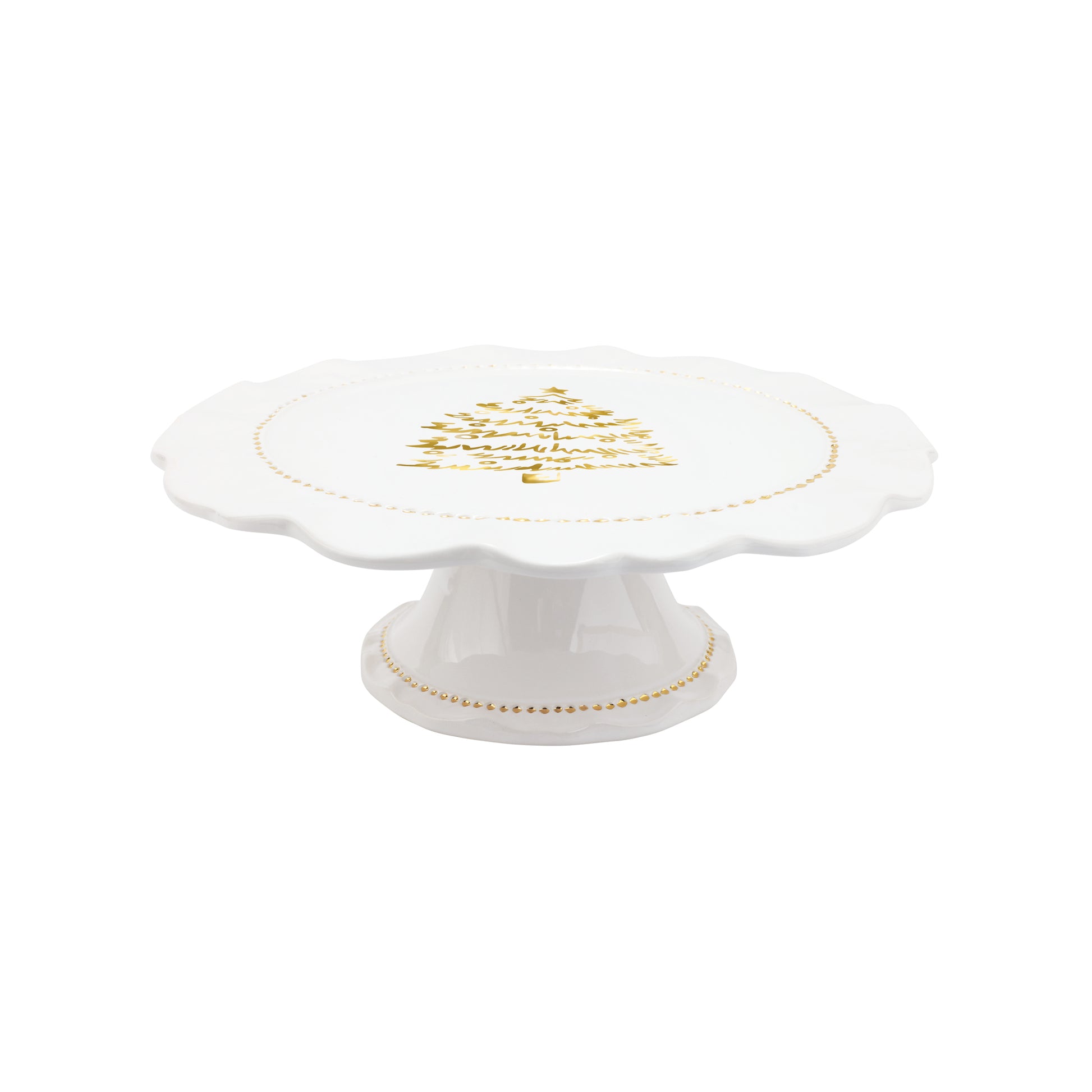 “Giorno di Festa” means a “day of happy events,” and this elegant cake stand embodies that spirit. A delicate wreath of etched details surrounds its scalloped edge, enhanced by a beautifully nuanced glaze—offering both subtle charm and timeless design.