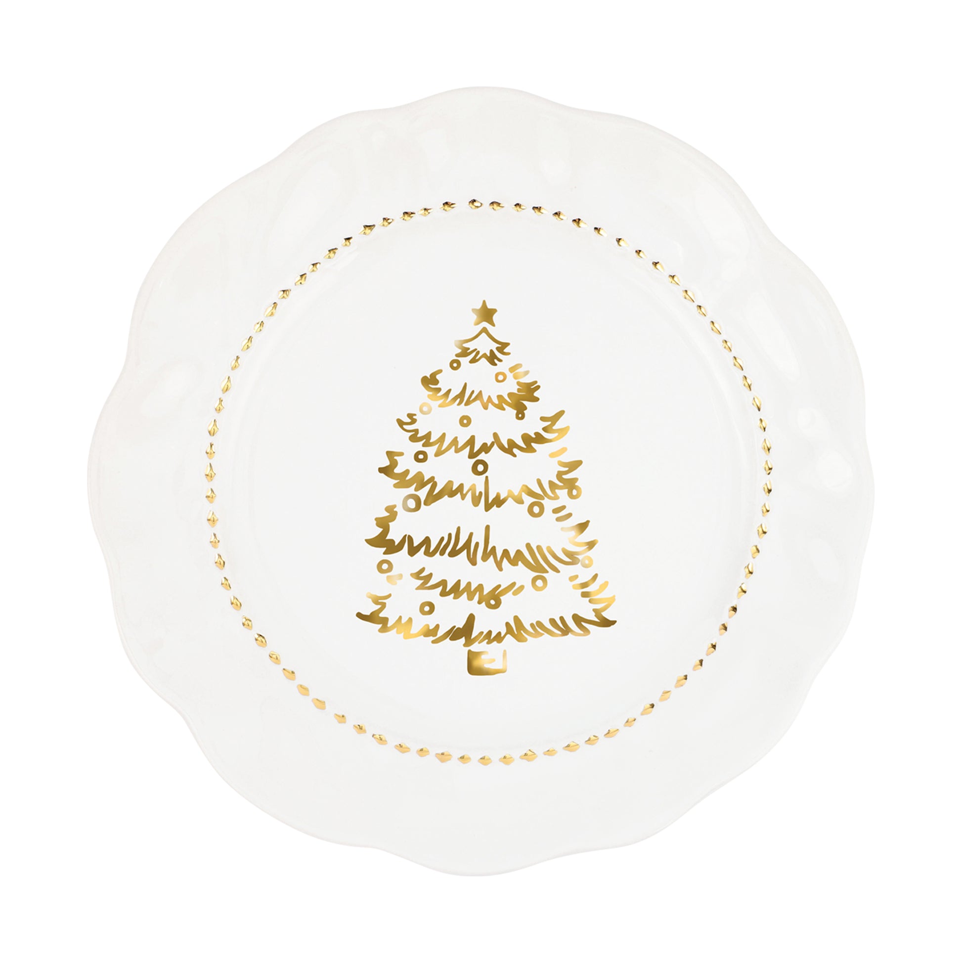 “Giorno di Festa” means a day of happy events, a sentiment beautifully expressed in this refined dinner plate. Featuring an elegant gold tree and wreath motif on glossy Italian stoneware, it brings holiday spirit and timeless charm to every meal.