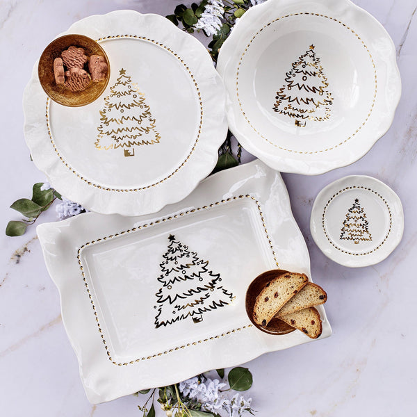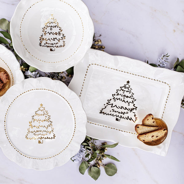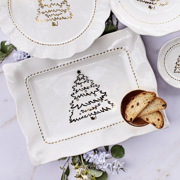 “Giorno di Festa” means a day of happy events—a name that perfectly reflects the spirit of this elegant platter. Subtle gold rims, wreath and tree motifs, and a refined cream glaze create a timeless statement that elevates every serving moment.