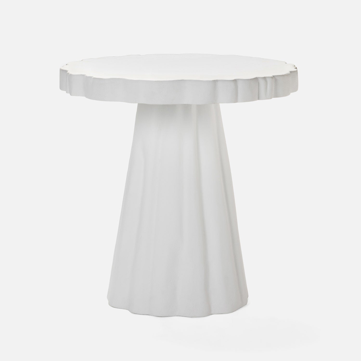 The Grady Side Table captures organic elegance with its enchanting, irregular scalloped edge. Handmade from reconstituted stone, each piece embraces the natural beauty of its material, which distresses gracefully over time. Built to withstand varied elements and temperatures, this durable design transitions seamlessly from indoor living to outdoor lounging.