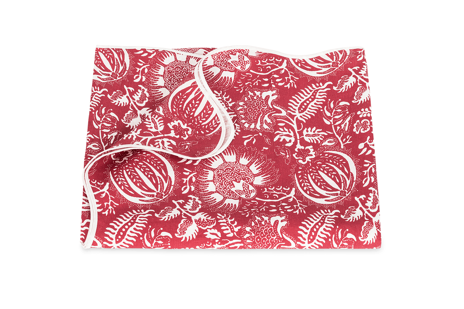 Inspired by hand-dyed textiles, the Granada Tablecloth features Schumacher’s intricate botanical pattern with the symbolic pomegranate at its center. Long regarded as a symbol of prosperity, hope, and abundance, the pomegranate adds meaning and festivity to every table. Finished with a scalloped piped edge, this linen brings timeless beauty to both everyday dining and celebratory occasions.