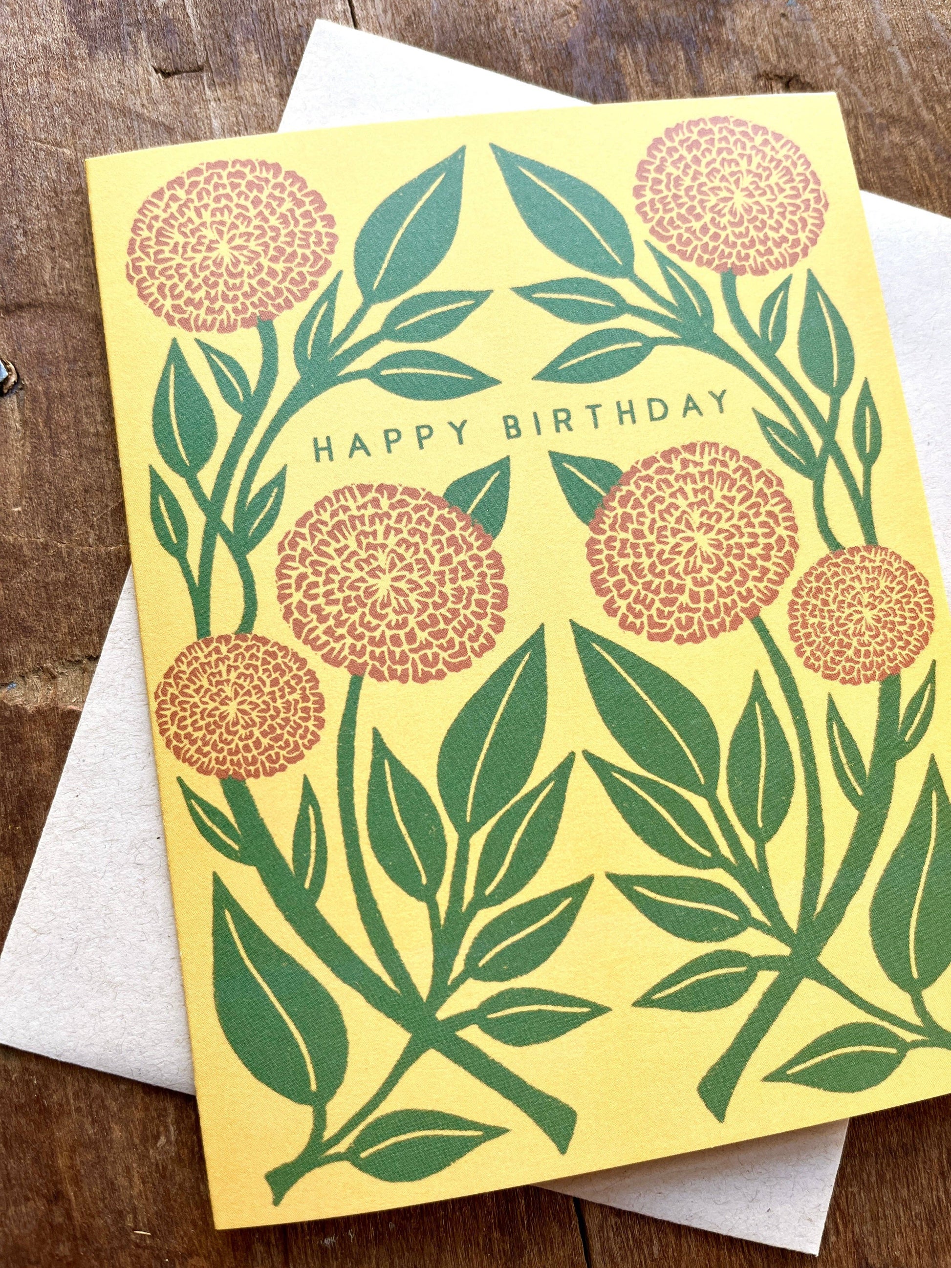 A Katharine Watson offset printed card, printed in Maine on 100lb cardstock. Each card is a standard A2 size, 5 ½” by 4 ¼”, is blank on the inside, and comes with a 100% recycled kraft envelope. Katharine begins each greeting card design with a sketch, watercolor painting or hand-carved linoleum block, which is digitally translated and later, individually printed.