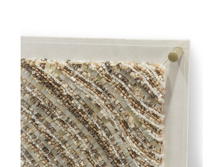 The Harbor Wall Décor is a refined take on coastal-inspired artistry. Featuring an assortment of natural shells hand-sewn onto a neutral canvas backdrop, this piece is protected by a sleek acrylic front and framed with antique gold metal hardware. Designed for versatility, it can be mounted either vertically or horizontally to suit your space.