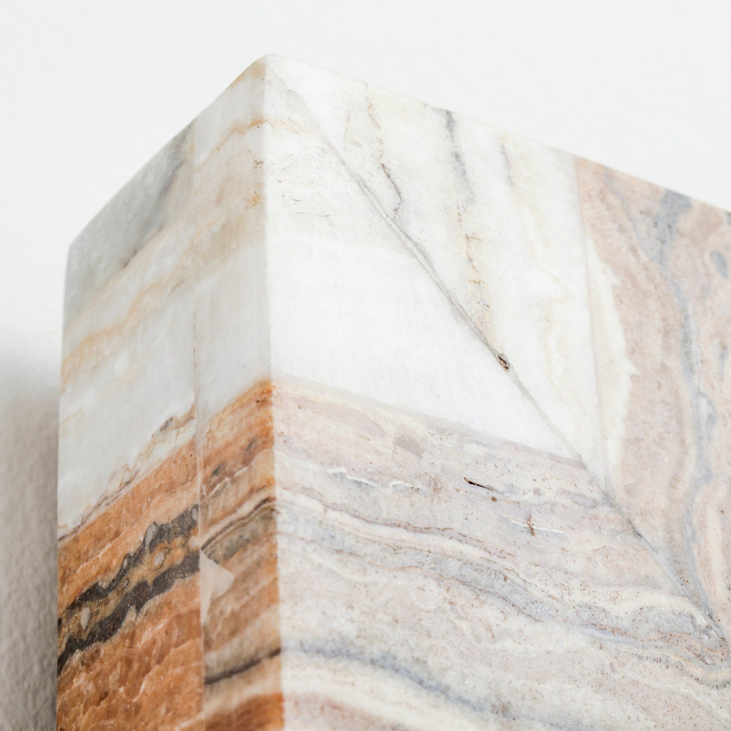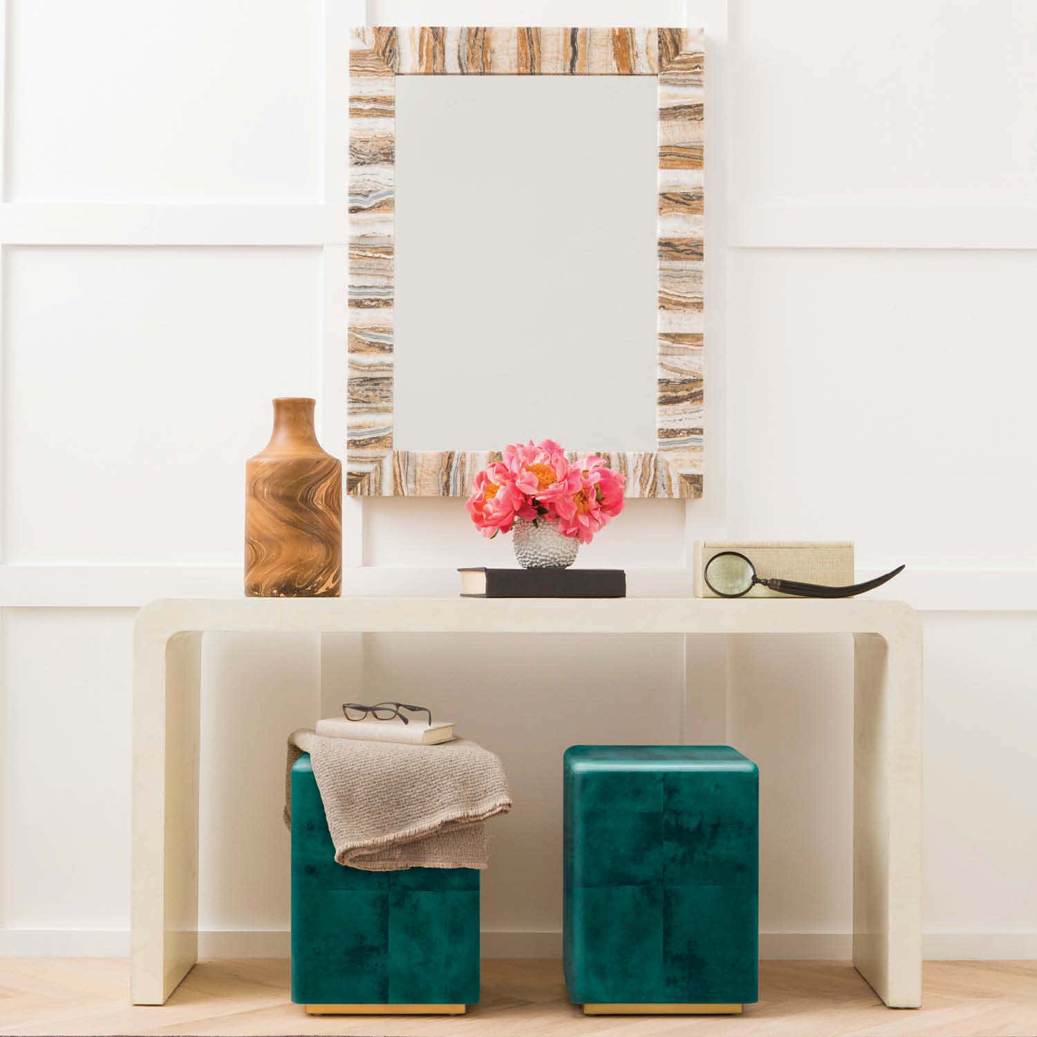 A true statement piece, the Harrison Mirror showcases the natural beauty of striped onyx, a stone revered since ancient times for its striking appearance and calming properties. Each mirror is entirely unique, with variations of striated beige, gray, and brown that create a rich, artful composition. Its substantial frame and timeless design make it as versatile as it is beautiful, complementing a wide range of interior styles.