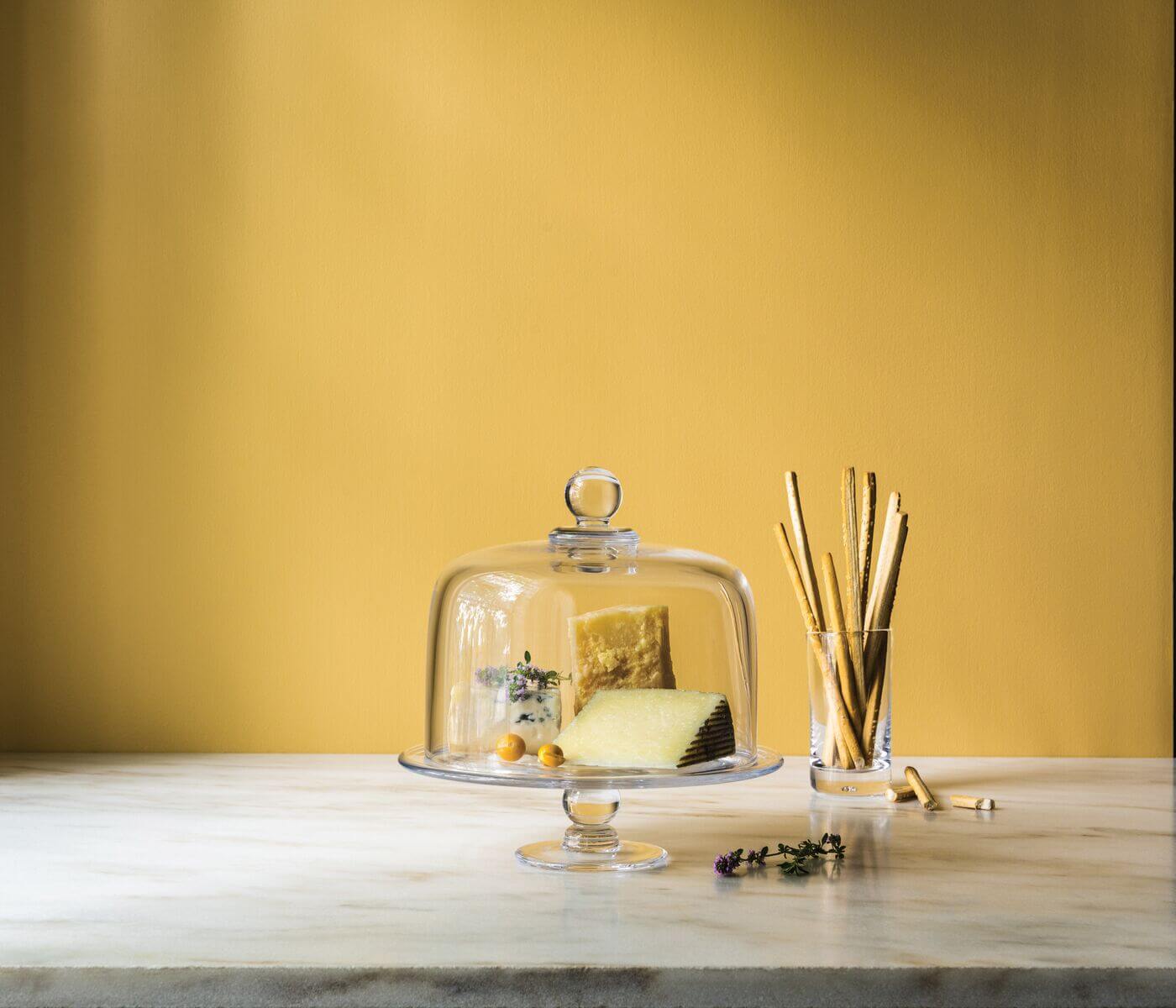 A scaled-down version of our original dome, the Simon Pearce Hartland Cake Dome offers an elegant way to protect and present everything from fruit tarts to artisan cheeses—especially during outdoor gatherings. Like all Hartland globe-and-stem designs, this graceful dome is handmade by a duo of master glassblowers working in tandem, showcasing the beauty of craftsmanship in every curve.