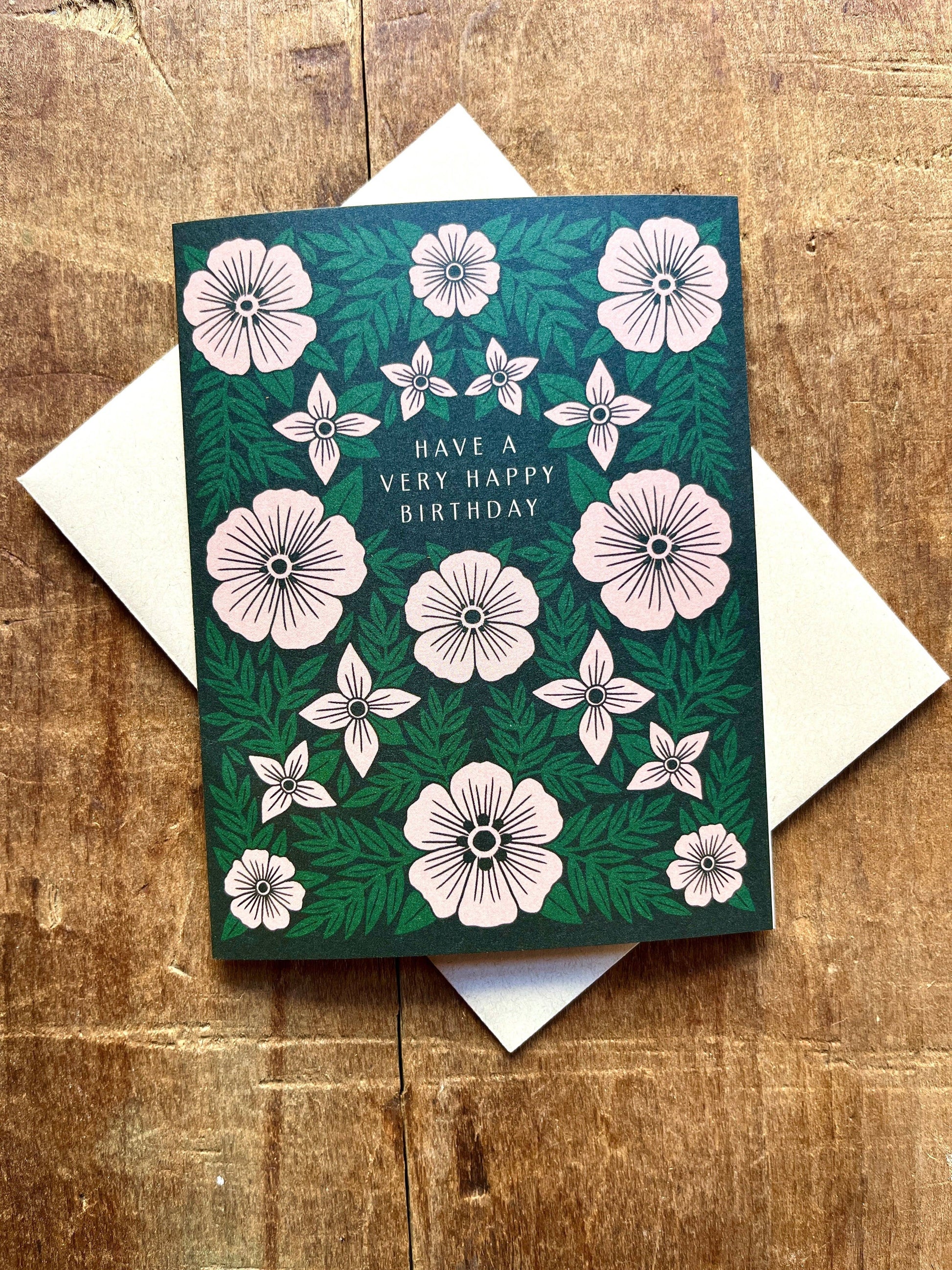Have a Very Happy Birthday Pink Floral Greeting Card