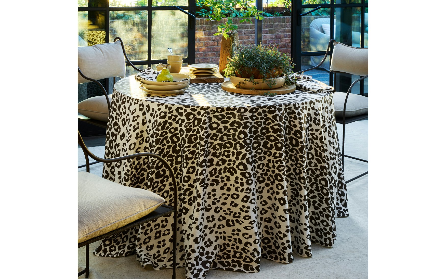 Introduced in the 1970s, the Iconic Leopard Tablecloth is as alluring as it is timeless. Distinctive and endlessly chic, this bold print is reimagined on classic linen in three versatile hues. Designed to make a statement, it’s equally at home at casual gatherings and formal dinners.