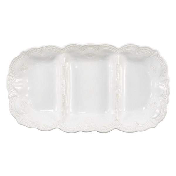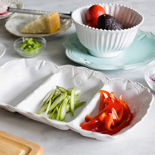 Add a captivating piece of Italian artistry to your home with the Incanto Stone White Lace Medium Three-Part Server. Perfect for both special occasions and everyday use, it brings timeless elegance to your table.