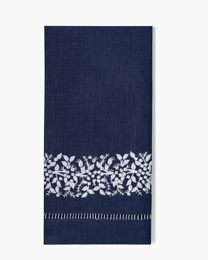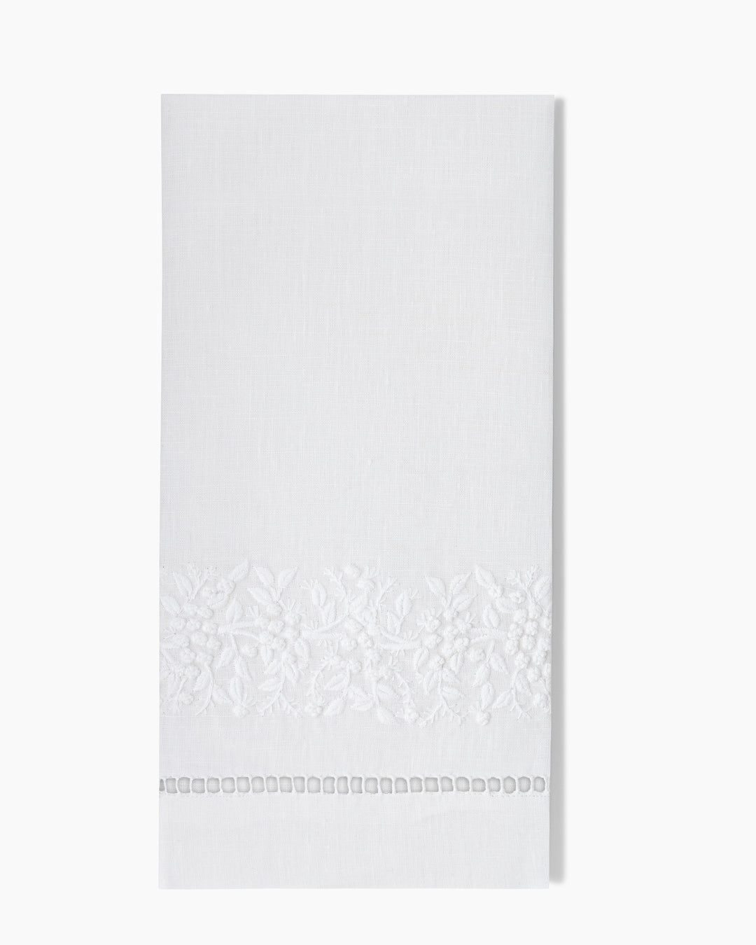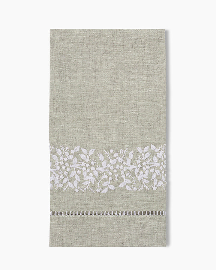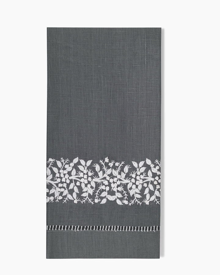 One of our best-selling embroidery patterns, the Jardin Classic Linen Guest Towel brings the timeless elegance of our beloved floral motif into your powder room or kitchen. Hand-embroidered in six colorways, it’s easy to find the perfect match for your space.