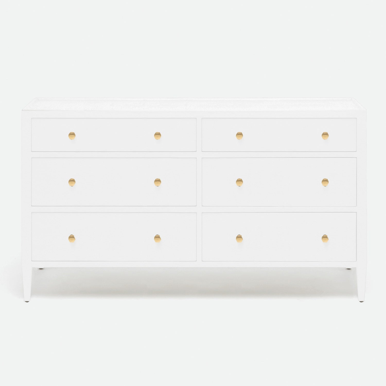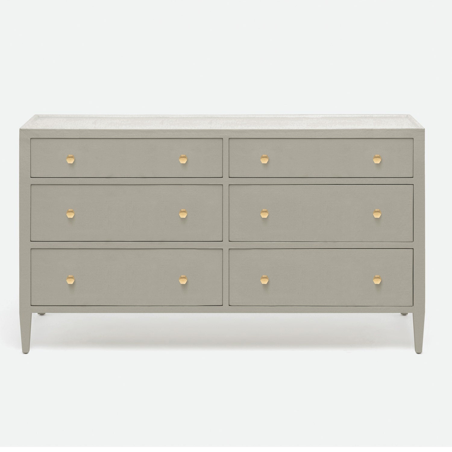 The Jarin Dresser embodies clean, modern sophistication with its fully finished design on all four sides and drawers. Crafted in faux Belgian linen, this piece highlights meticulous attention to detail, including bottom-mount European glides that provide smooth function and elevate its quality above standard linen dressers. A timeless blend of texture and form, it’s both versatile and enduring.