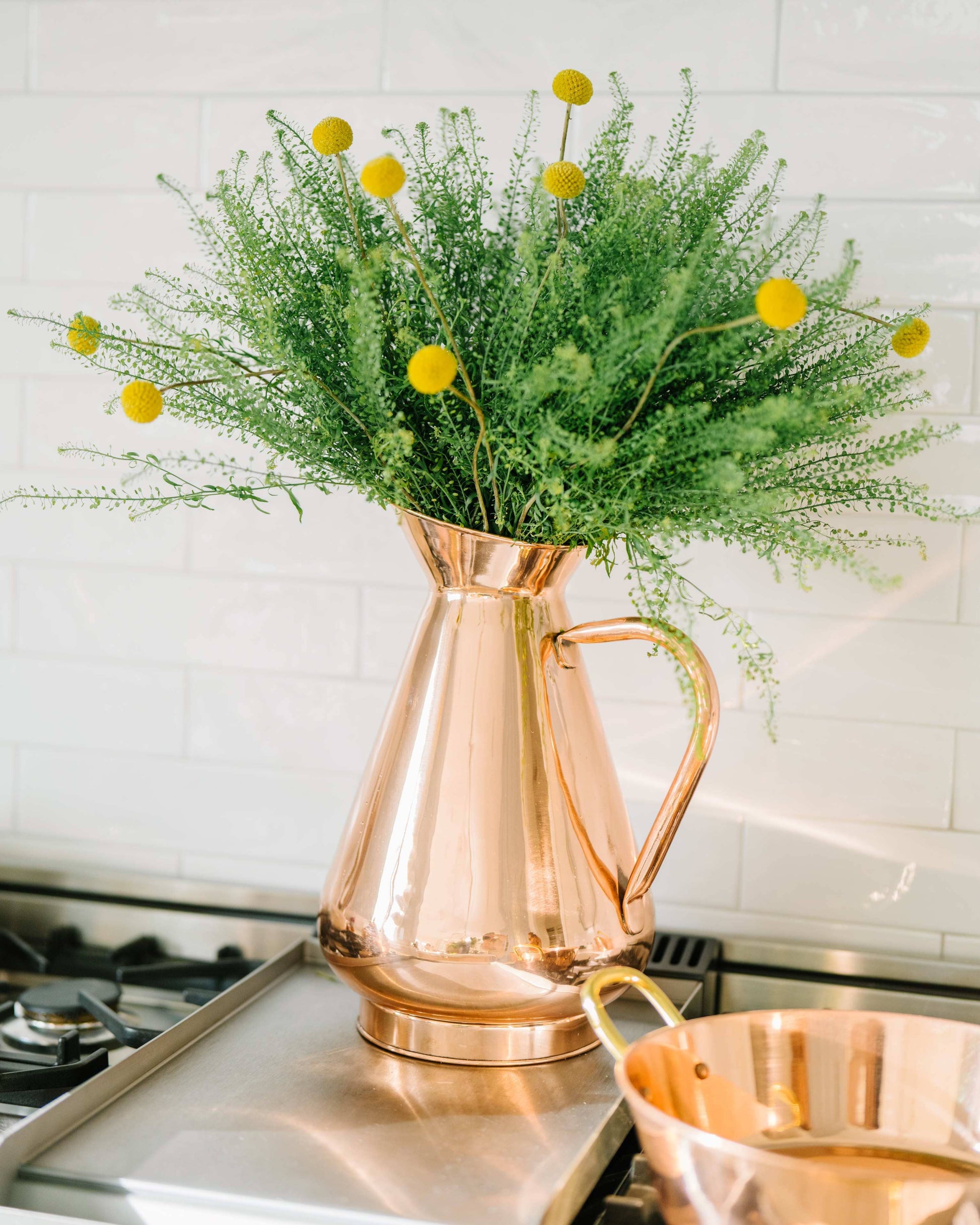 Our Large Copper Heirloom Vase was designed to be the piece that gets passed down for generations. It is large and made from 100% copper. The interior and exterior are both made with pure copper, making it sturdy and a beautiful statement piece for any space. Unlined copper, food safe lacquer applied on exterior of the vase. Hand wash only.