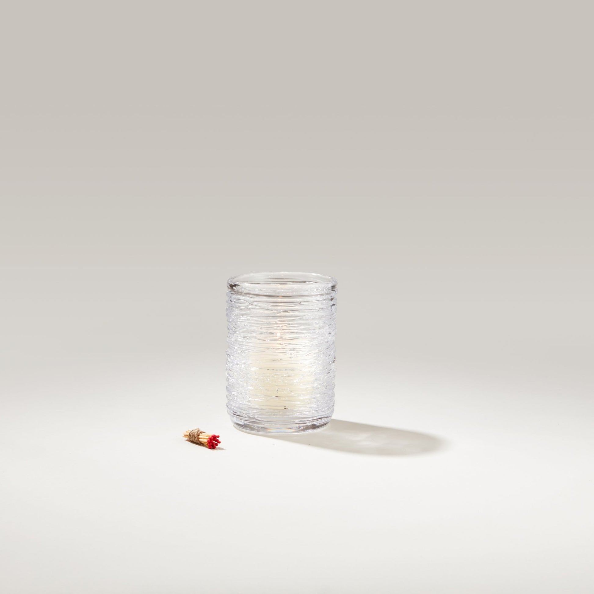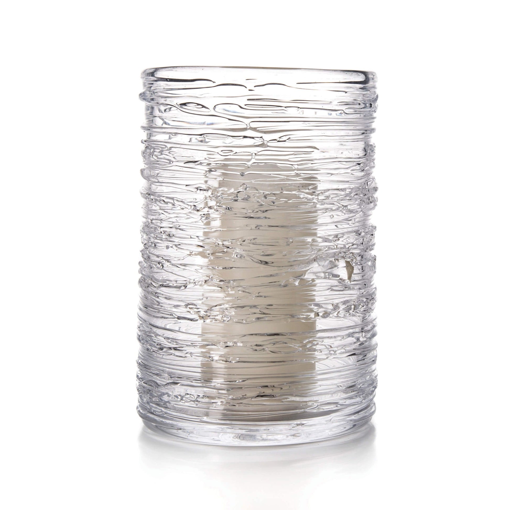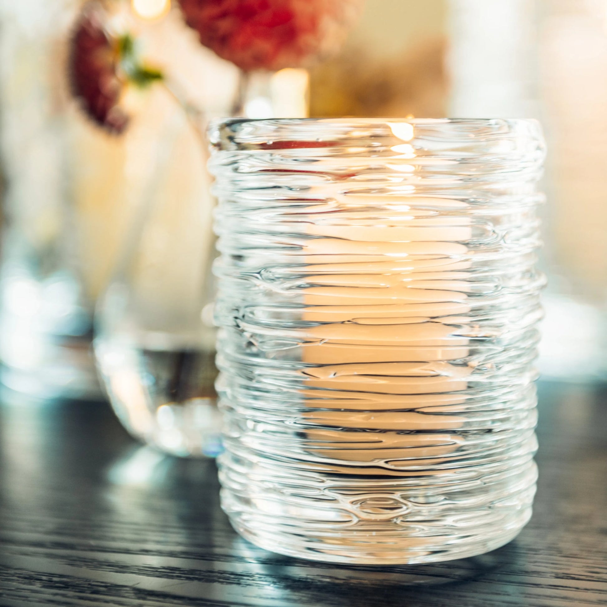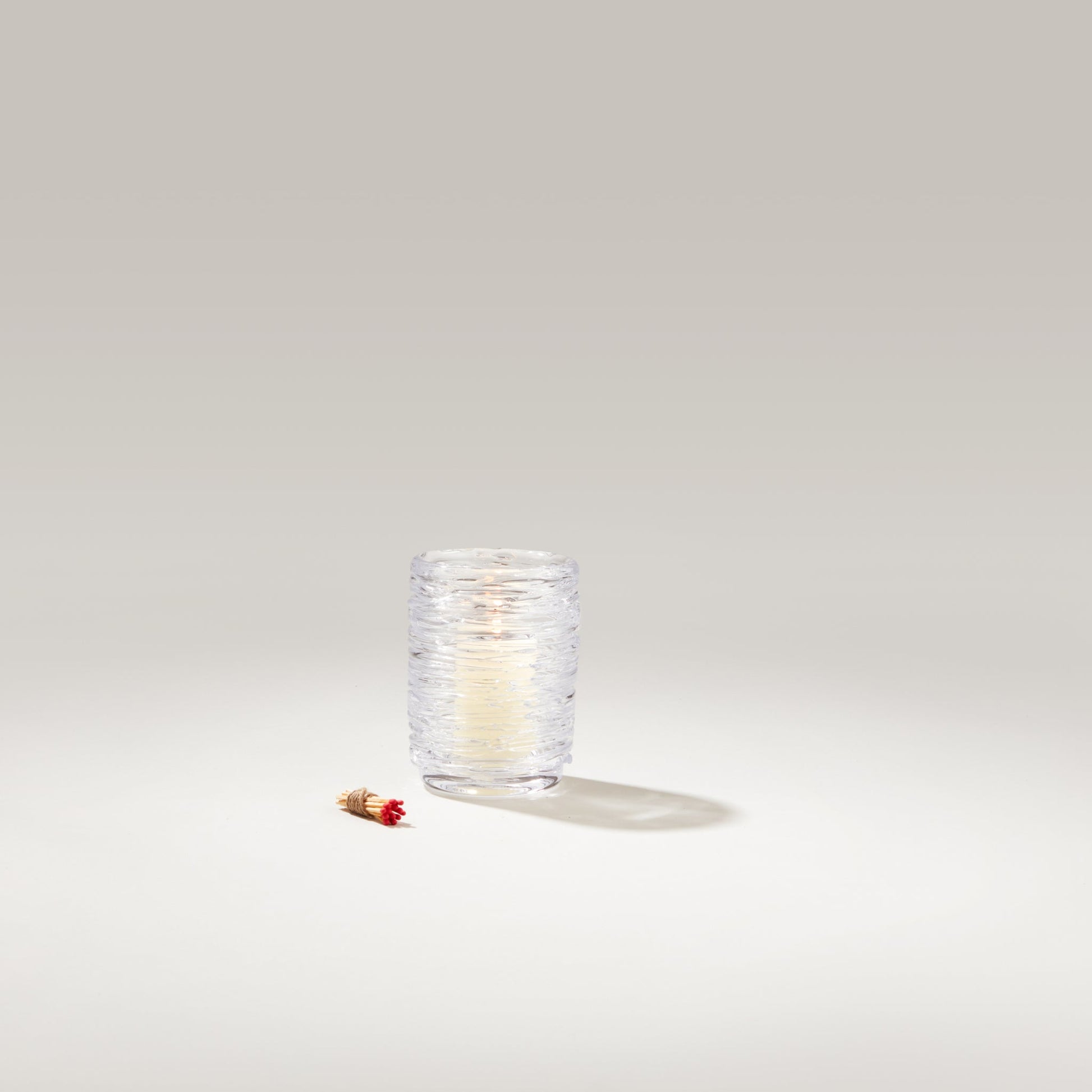 Inspired by the ever-changing rivers and streams of Vermont, the Wrapped Glass Hurricane captures the fluid beauty of nature in motion. In a bold interpretation of traditional craftsmanship, master glassblowers skillfully wrap delicate strands of molten glass around a cylindrical form—creating a dynamic, organic silhouette that is truly one-of-a-kind.
