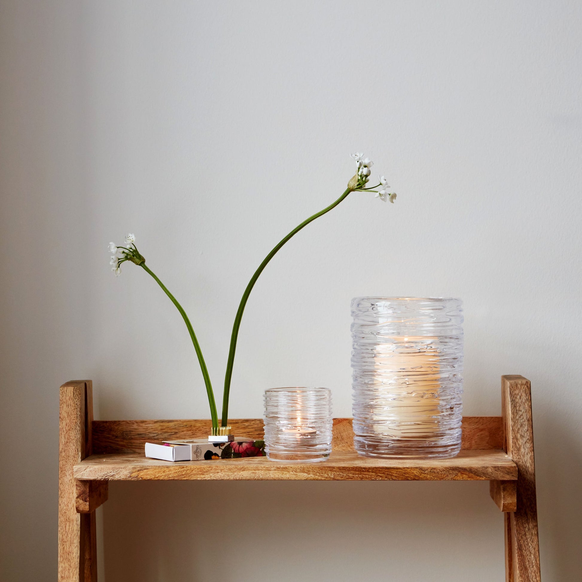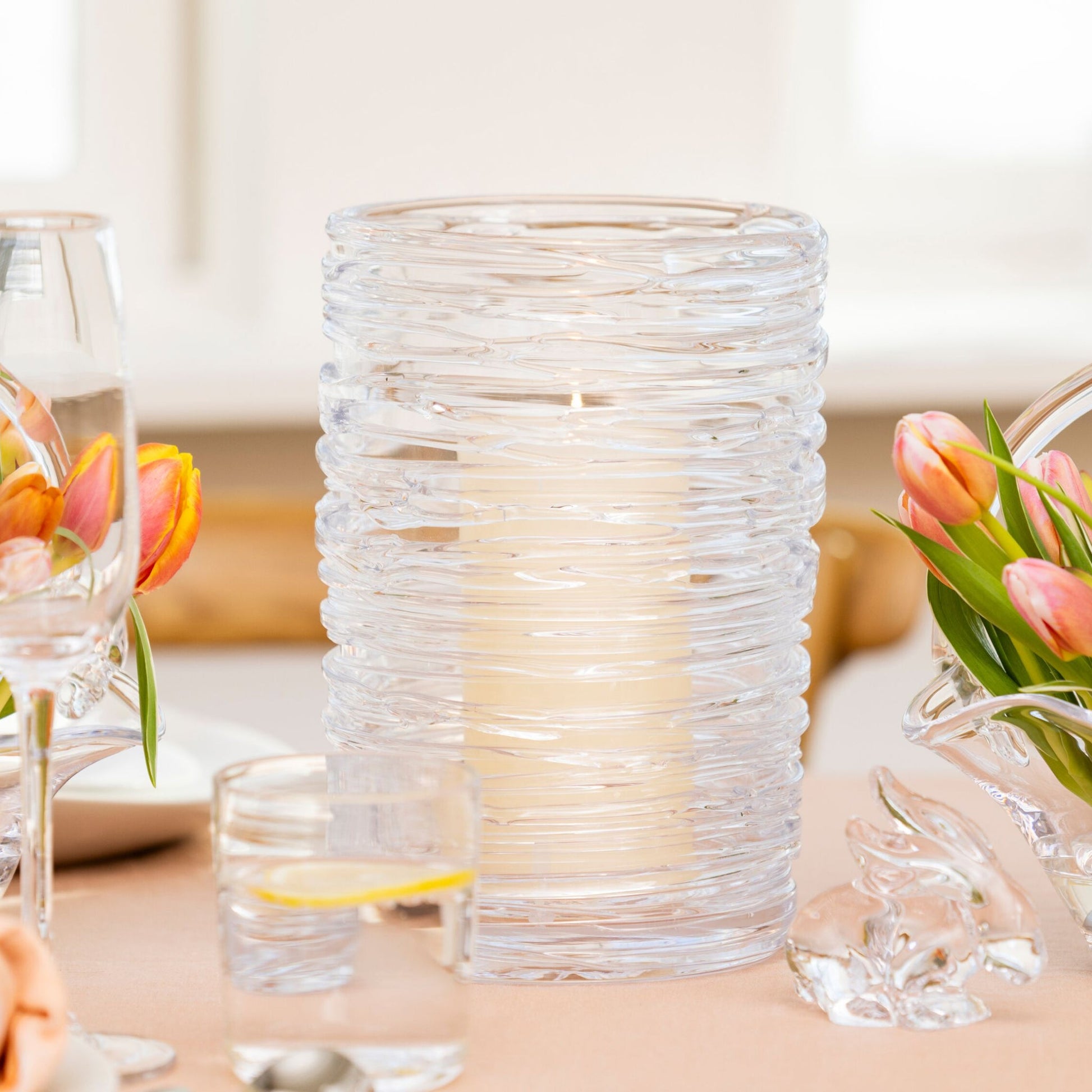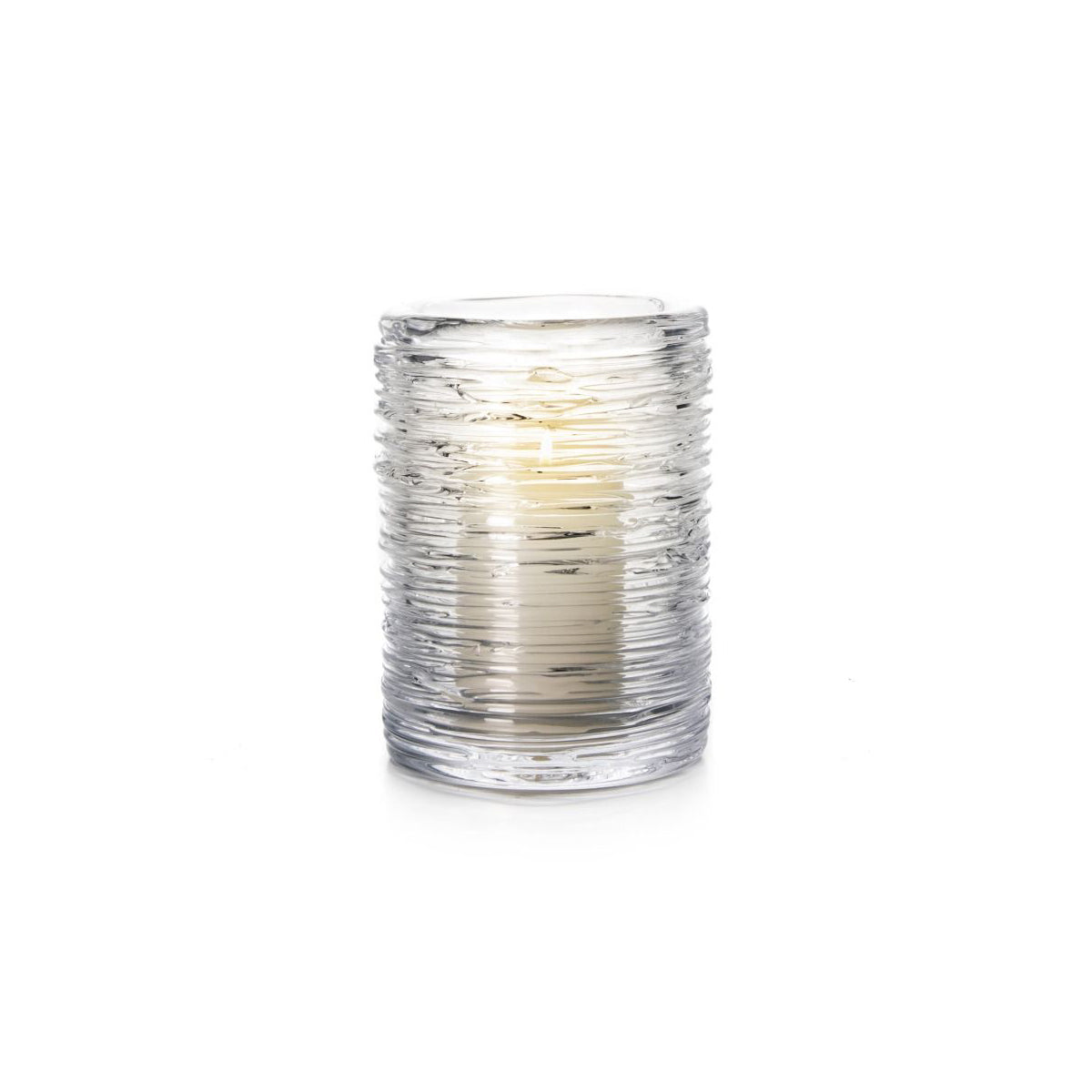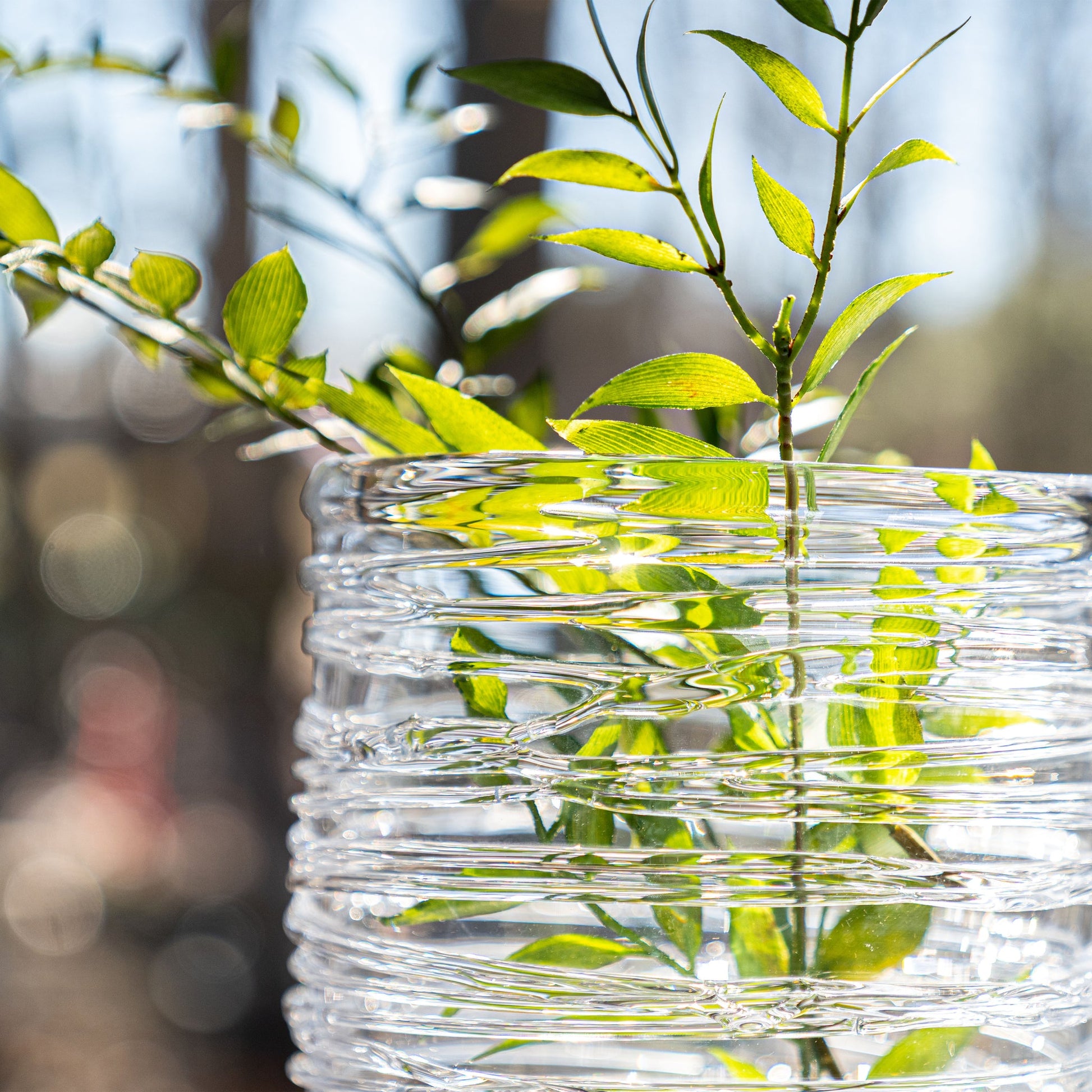 Inspired by the ever-changing rivers and streams of Vermont, the Wrapped Glass Hurricane captures the fluid beauty of nature in motion. In a bold interpretation of traditional craftsmanship, master glassblowers skillfully wrap delicate strands of molten glass around a cylindrical form—creating a dynamic, organic silhouette that is truly one-of-a-kind.