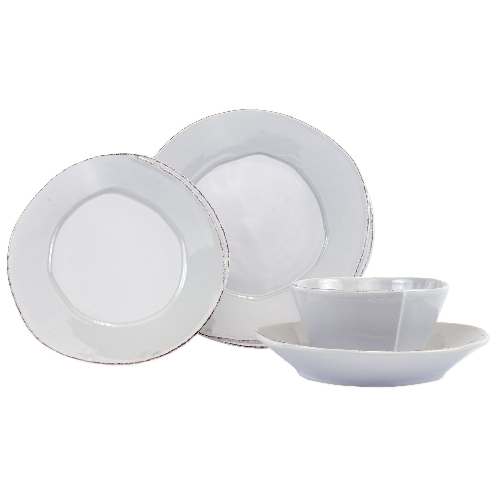 Introduce timeless Italian craftsmanship to your table with the Lastra Four-Piece Place Setting, a perfect starter kit that includes 1 European dinner plate, 1 salad plate, 1 pasta bowl, and 1 cereal bowl. Inspired by the circular wooden slabs used for centuries in traditional Italian cheesemaking, each piece in the Lastra collection features delicate overlapping details and a subtle dusting effect reminiscent of ash used for cheese preservation.