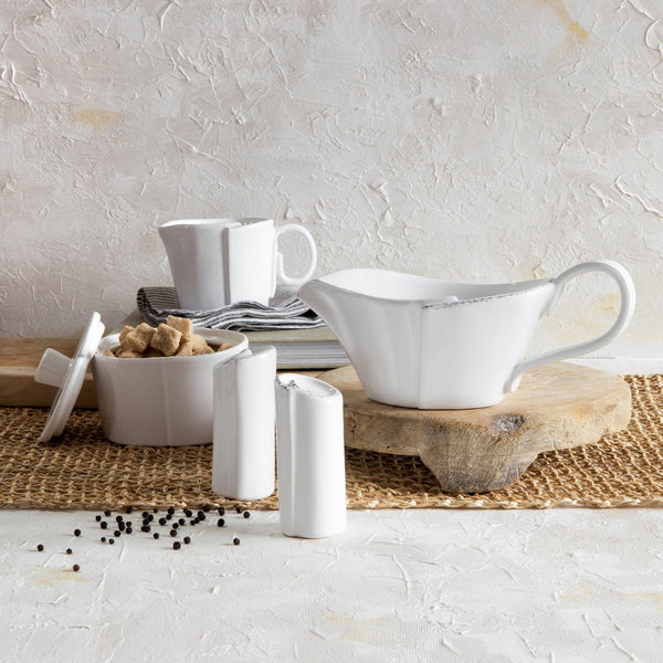 Beloved for its sophisticated simplicity, versatility, and durability, the Lastra White Accessories Set brings understated elegance to your dining experience. This thoughtfully curated collection includes the Lastra White Sugar Bowl, Lastra White Creamer, Lastra White Salt and Pepper Shakers, and Lastra White Sauce Server. Whether enhancing your morning coffee ritual or elevating your dinner presentation, this set offers timeless beauty and functionality.