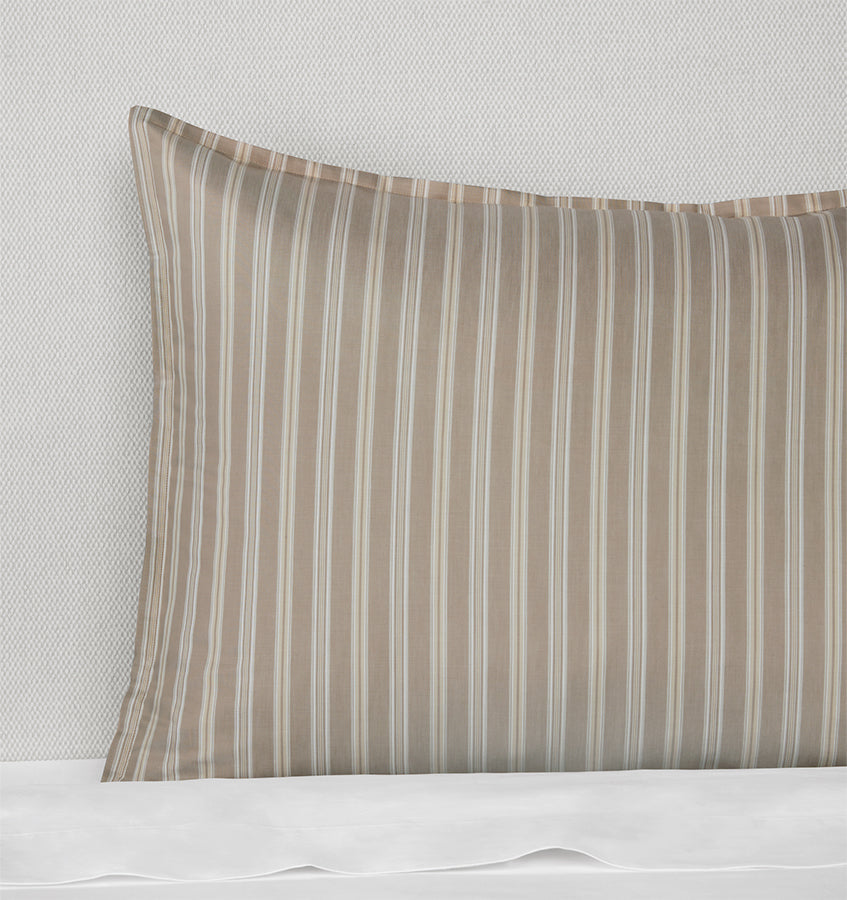 The Leranto Sham embodies quiet sophistication with its yarn-dyed sateen jacquard of subtle stripes across a refined sand palette. Italian-crafted with sartorial precision, its minimalist design is enriched by a sleek flange, balancing understated beauty with timeless elegance. Perfectly pairing with the Leranto Duvet Cover, this sham elevates any bedding ensemble with effortless style.