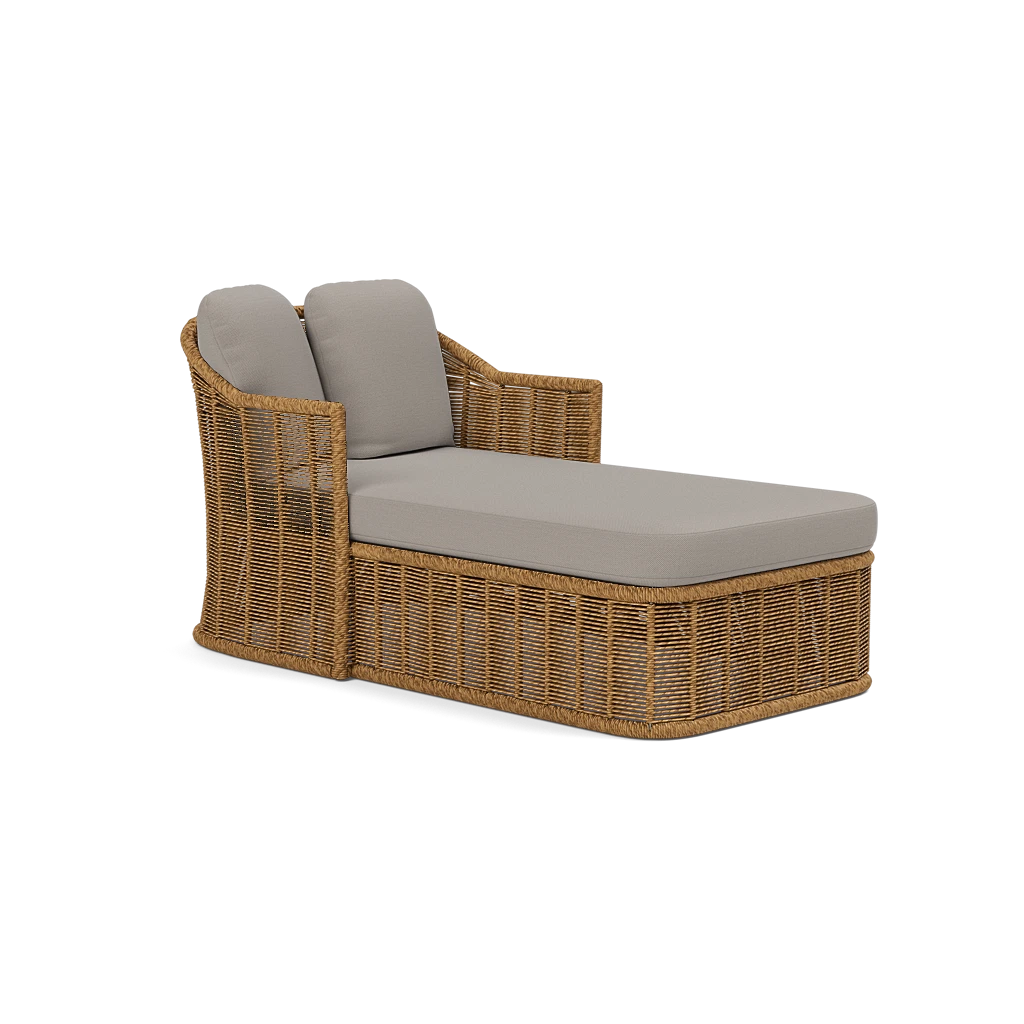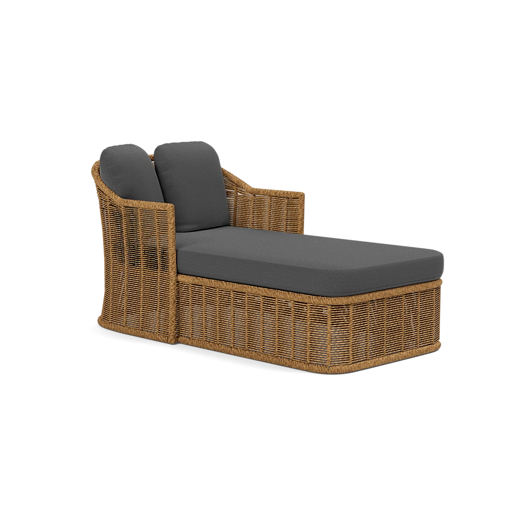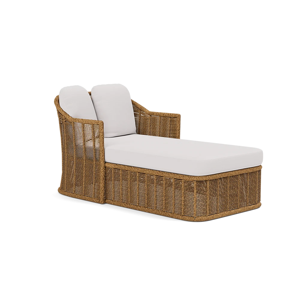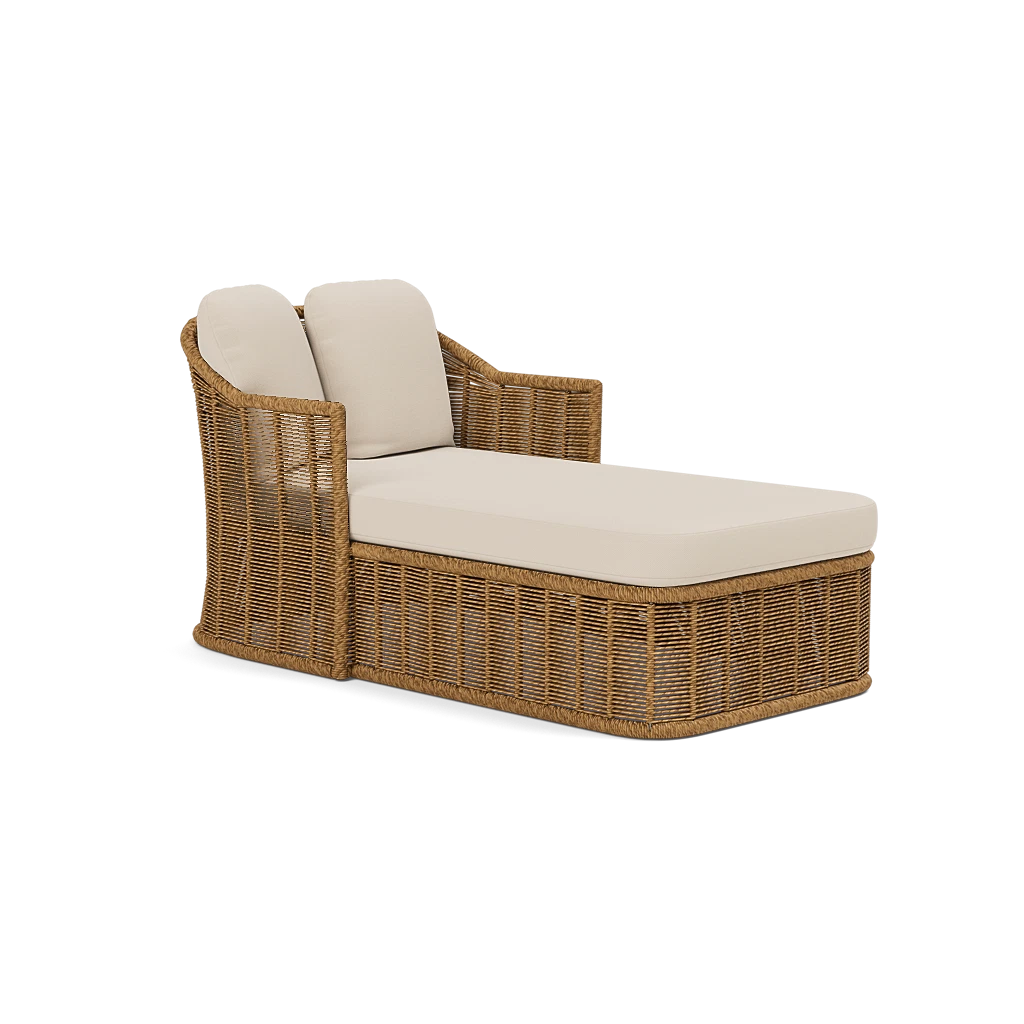 Experience outdoor relaxation redefined with the Liliana Daybed. Designed for optimal lounging, its modern silhouette is elevated by a striking winged headboard crafted from woven water hyacinth and reinforced with aluminum. Its twisted faux wicker finish adds durability while maintaining an inviting, organic texture.