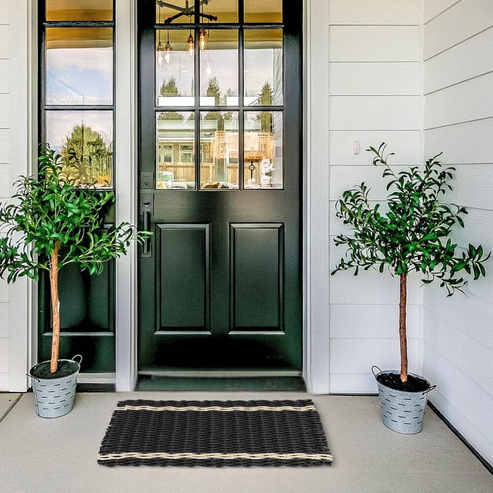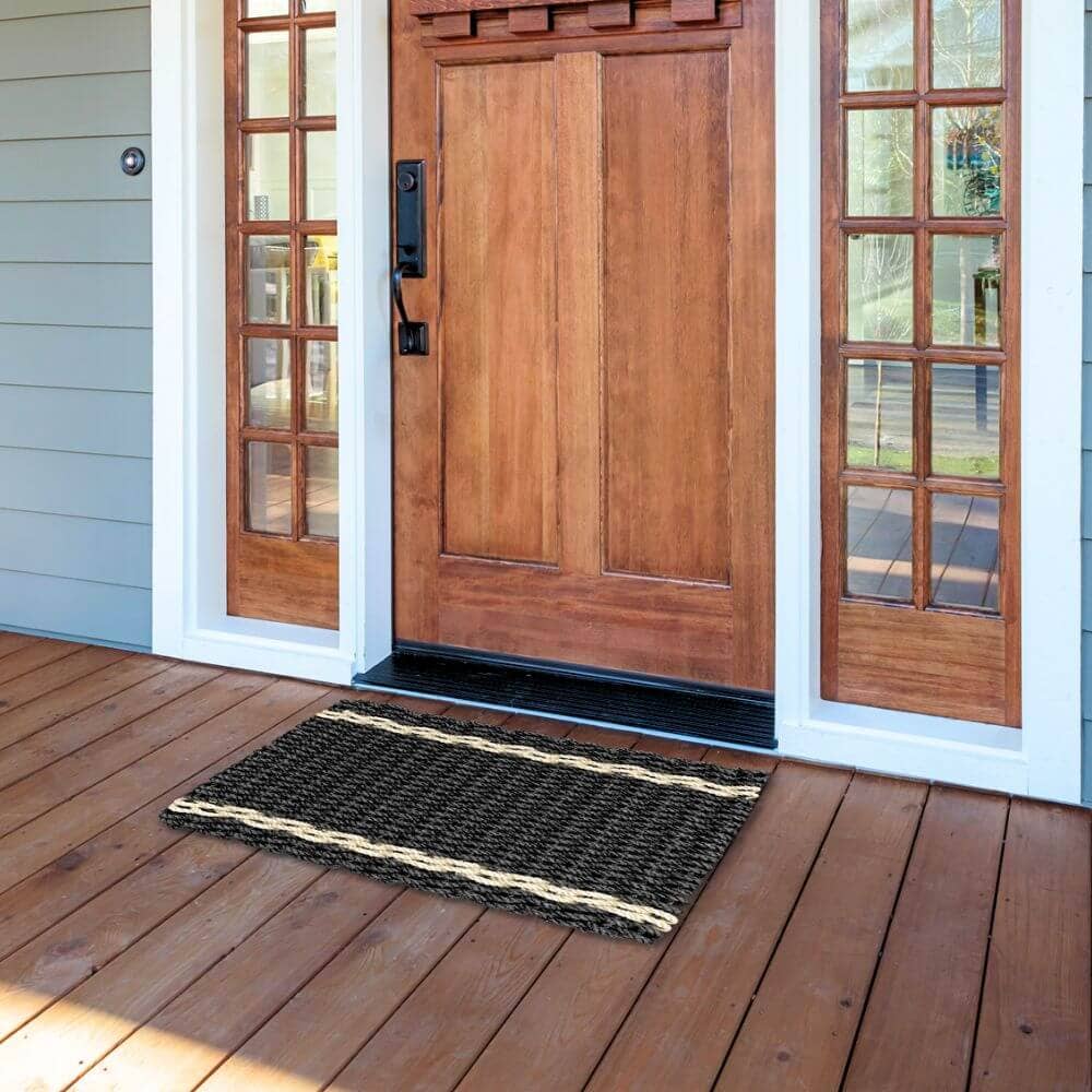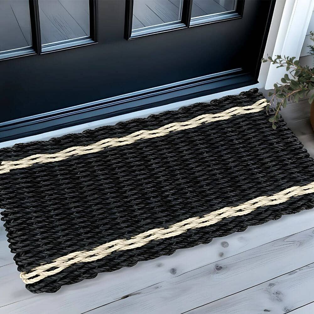 Lobster Rope Doormat: Black/Tan Tailored Stripes: 24x36