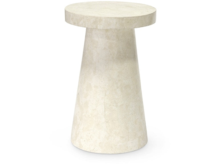 Elegant and refined, the Lorenzo Outdoor Side Table features natural white agate stone, hand-cut and meticulously inlaid over a fiberglass frame. The organic beauty of the stone brings subtle texture and character to outdoor spaces, with natural variations in color and grain that make each piece unique.