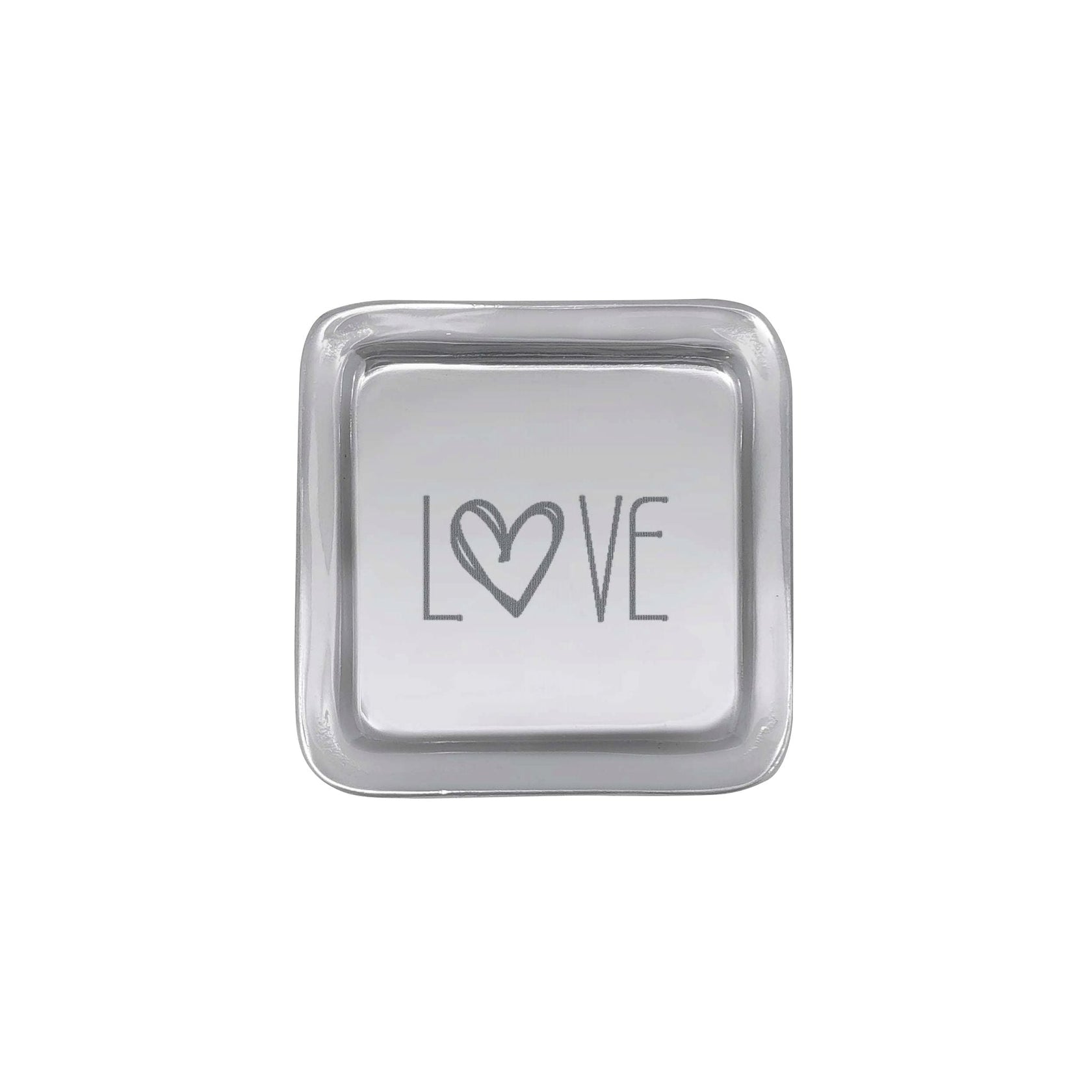 Add a touch of sentiment to your workplace with the LOVE Signature Square Tray Perfectly sized to hold rings on a dresser or post-it notes on a desktop, all while serving as a charming decorative piece. Handcrafted from 100% recycled, buffed-until-brilliant aluminum. Beautifully boxed in a Mariposa Gift Box - we make gifting easy!