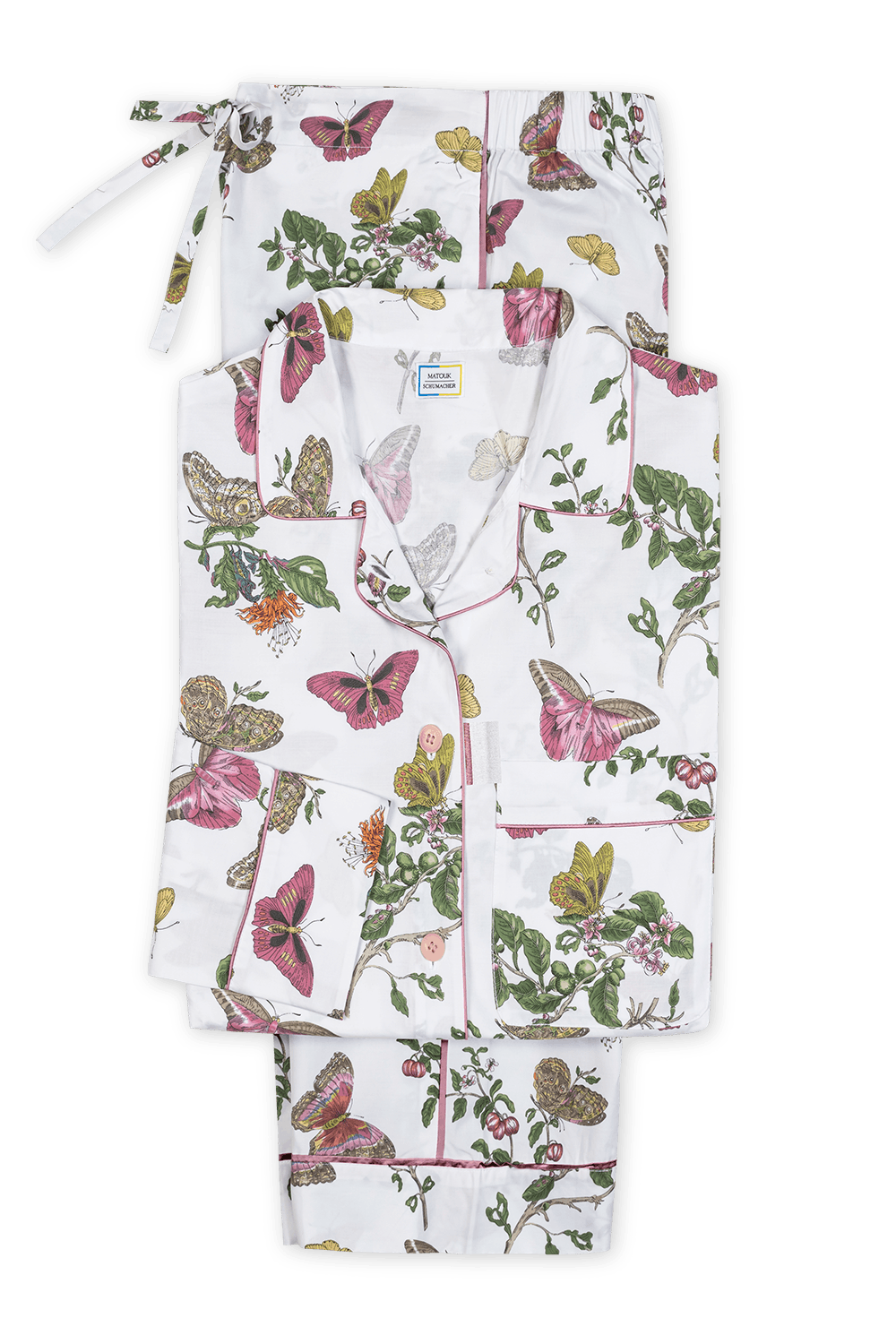 Crafted from our dreamy Luca cotton percale in a vibrant Lulu DK print, the Luca Pajama Set blends the luxury of Matouk sheeting with the comfort of your favorite lived-in dress shirt. The tailored top features natural corozo buttons, piped details, and a scooped hem, while the drawstring trousers include an elastic back for added comfort and a flattering fit. Effortlessly chic, these pajamas are as stylish outside the house as they are in the bedroom.